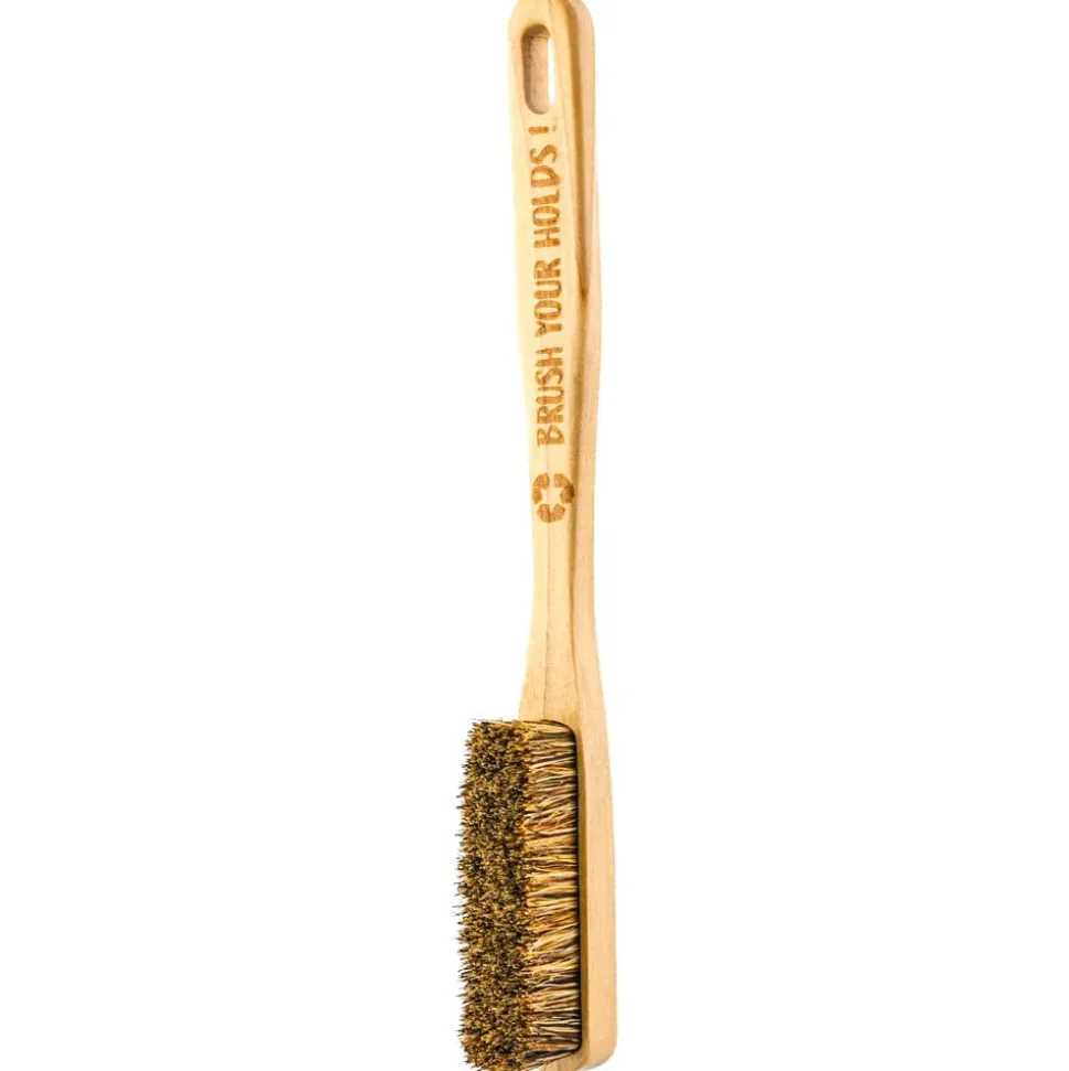 - Poils en sanglier : Offre une forte densité pour brosser efficacement la magnésie hors des prises.