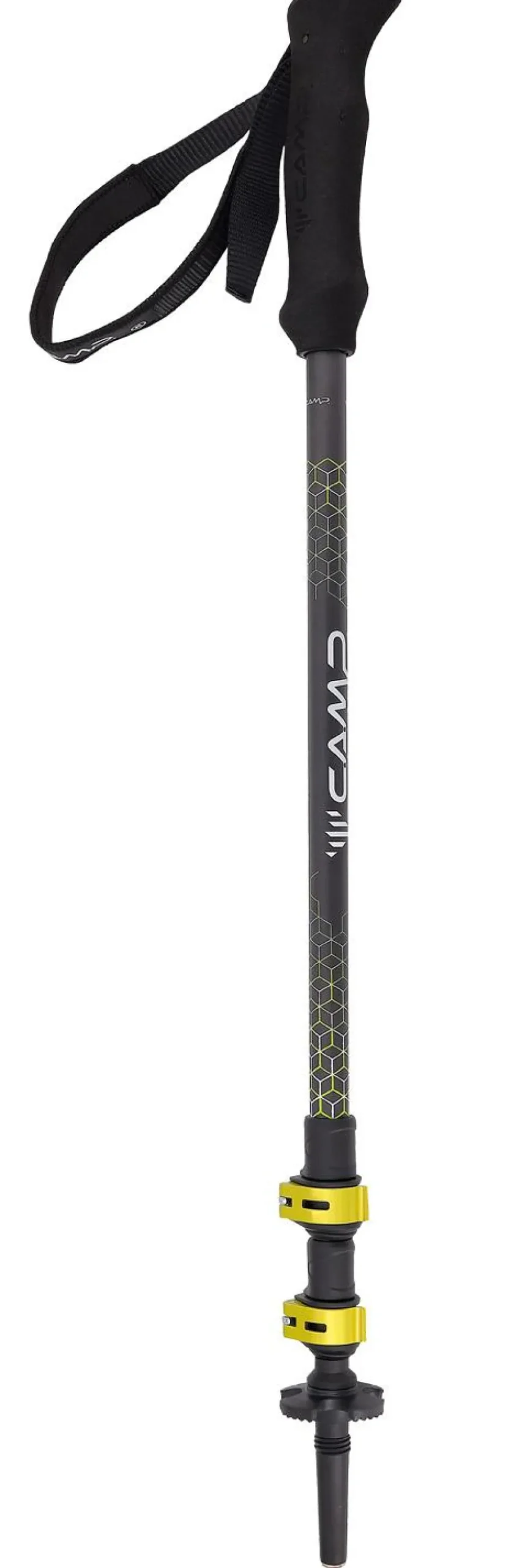 Les bâtons de randonnée et de trekking Camp Backcountry Carbon 2.0 est un modèle télescopique composés de trois brins en fibres de carbone. Il est très léger et sa taille est ajustable de 64 à 135 cm. Il n’occupe donc que peu de place une fois repliée tout en étant facilement réglable grâce à son système de verrouillage/déverrouillage avec clip en aluminium. Sa poignée en gomme est recouverte d’un matériau expansé offrant un confort optimal, tandis que les dragonnes différenciées participent elles aussi à offrir un confort supérieur dans toutes les conditions d’utilisation.