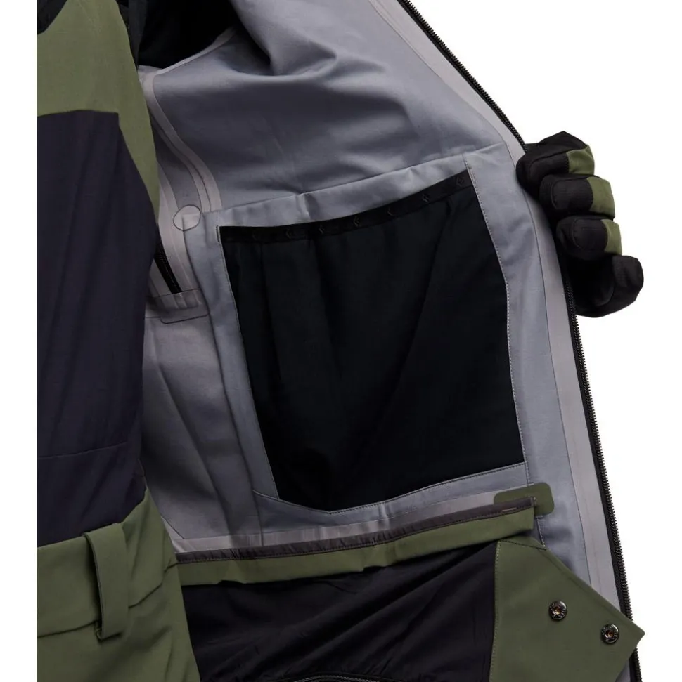 La veste Recon Stretch Pro Shell dispose de renforts aux avant-bras, aux coudes, aux hanches et aux épaules, qui sont les zones les plus sollicitées et en contact avec le sac à dos,afin d’optmiser sa résistance à l’usure et donc sa durabilité. Côté accessoires, on retrouve l’indispensable jupe pare-neige amovible, une capuche compatible avec le port du casque, un cordon de serrage du bas de veste et de nombreuses poches.