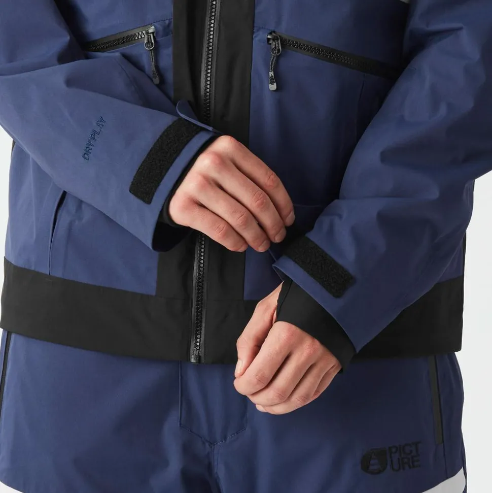 Le blouson de ski Picture Naikoon associe performance technique et confort sur les pentes les plus exigeantes. Confectionné en polyester circulaire, sontissu stretch quadri-axial suit naturellement les mouvements du corps tout en assurant une excellente durabilité. Sa membrane Dryplay 20K/20K couplée à un traitement déperlant sans PFC et des coutures entièrement étanches garantit une barrière fiable contre la neige et l’humidité. La capuche ergonomique ajustable sur trois points, le dos allongé et la jupe pare-neige élastiquée renforcent la protection en conditions froides ou humides. Les manchons en lycra avec passe-pouces, les poignets réglables et le cordon de serrage à la taille optimisent l’ajustement. Pour réguler la température, des zips d’aération sous les bras sont intégrés.Le blouson dispose de deux poches latérales, deux poches poitrine zippées, une poche forfait, ainsi que deux pochesintérieures, dont une en mesh.