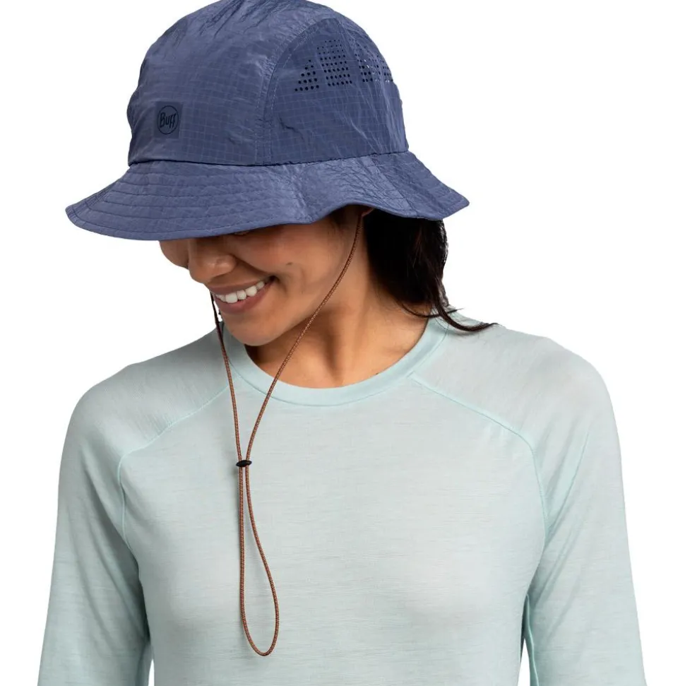 Le bob Go Bucket Hat Solid Indigo de Buff offre une protection solaire UPF 50 avec style et confort.