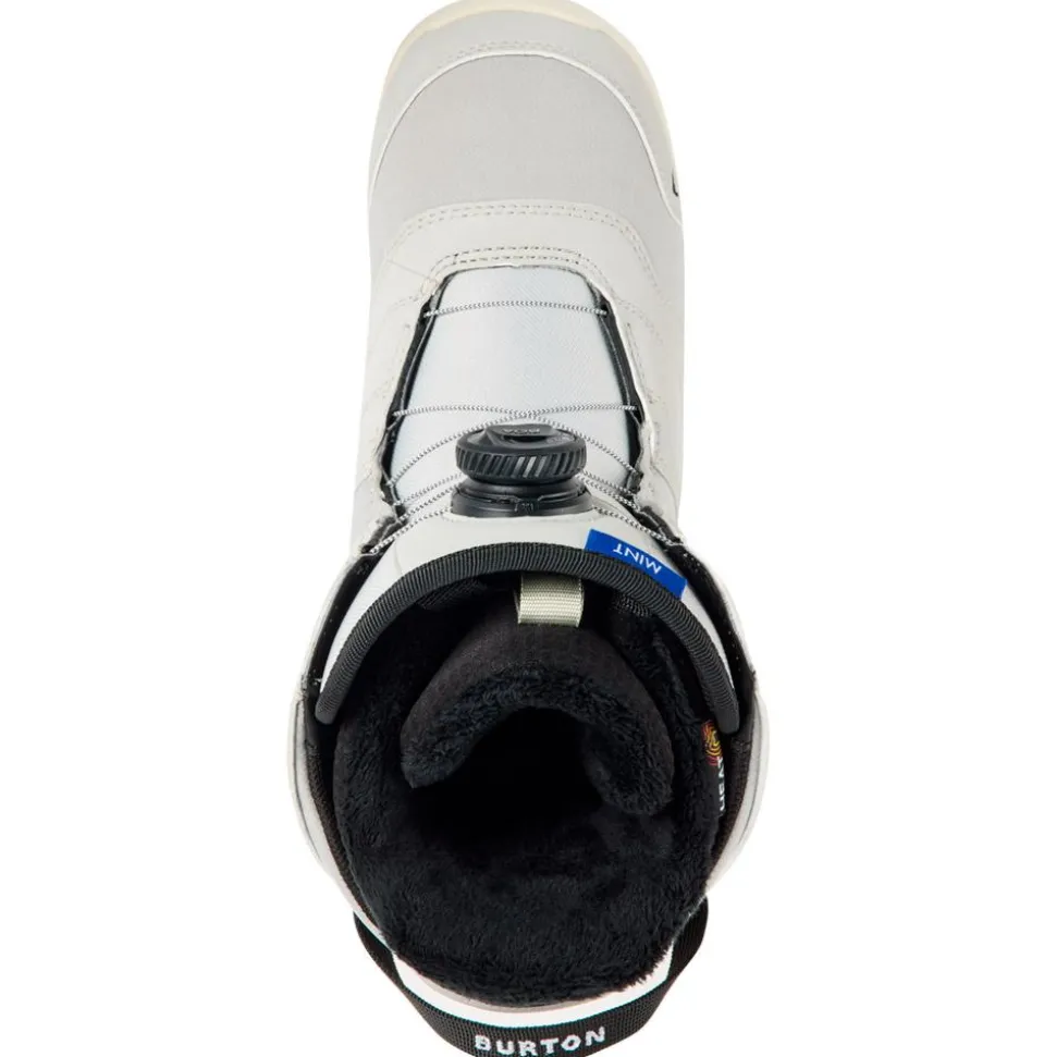 La Burton Mint BOA GrayCloud est une boots souple et confortable, idéale pour découvrir le snowboard avec aisance et profiter pleinement des descentes en station.