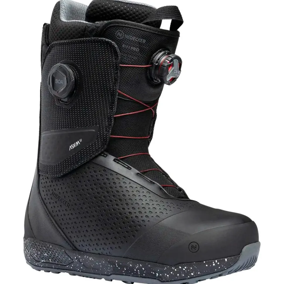 La Rift Pro Black de Nidecker est une boot snowboard pour homme offrant un flex moyen, un maintien optimal grâce à son double serrage Boa et un confort durable.