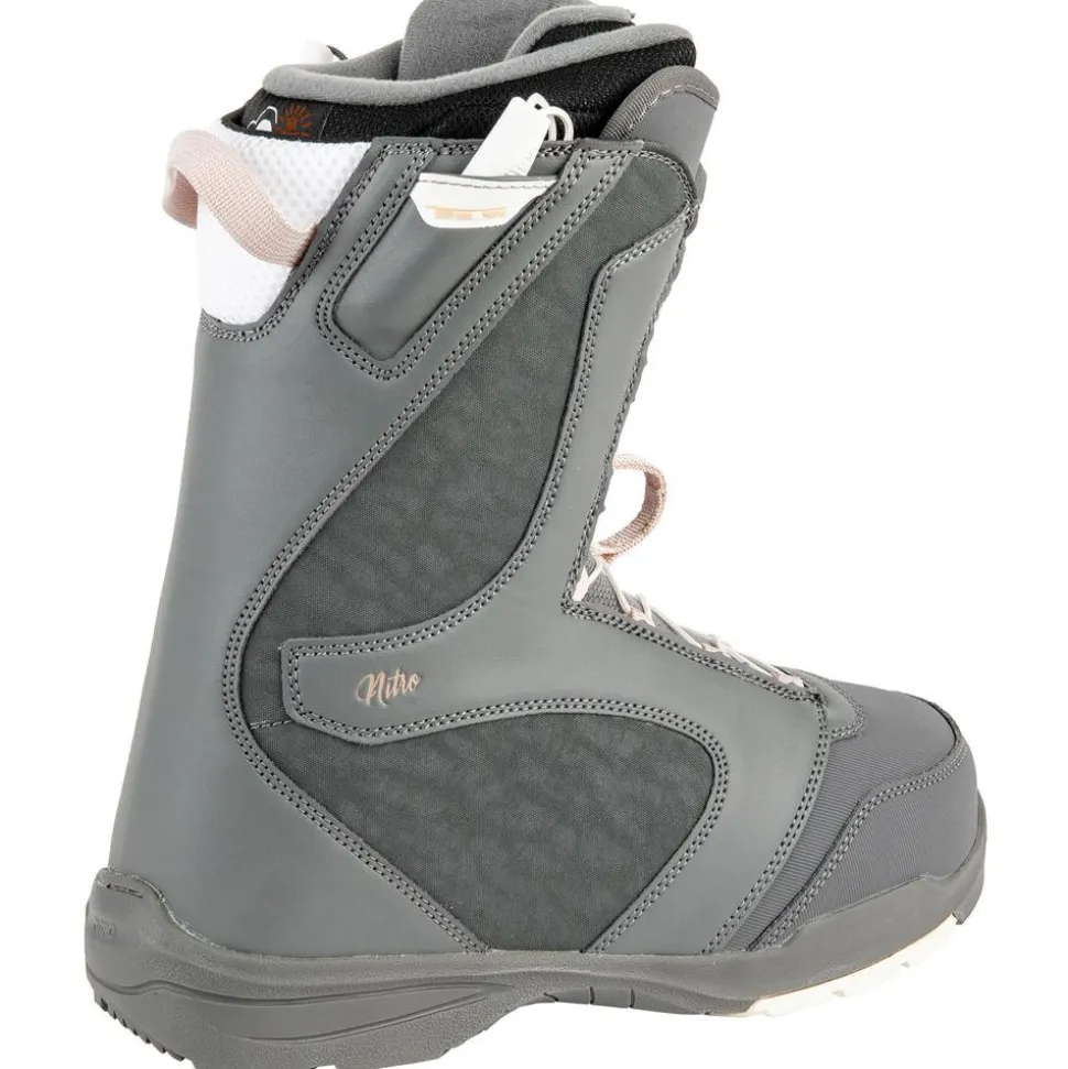 La Nitro Flora TLS est une chaussure de snowboard pour femme spécialement conçue pour les débutantes, offrant un flex souple, un système de laçage rapide et précis, ainsi qu’une semelle offrant une excellente absorption des chocs et des vibrations.