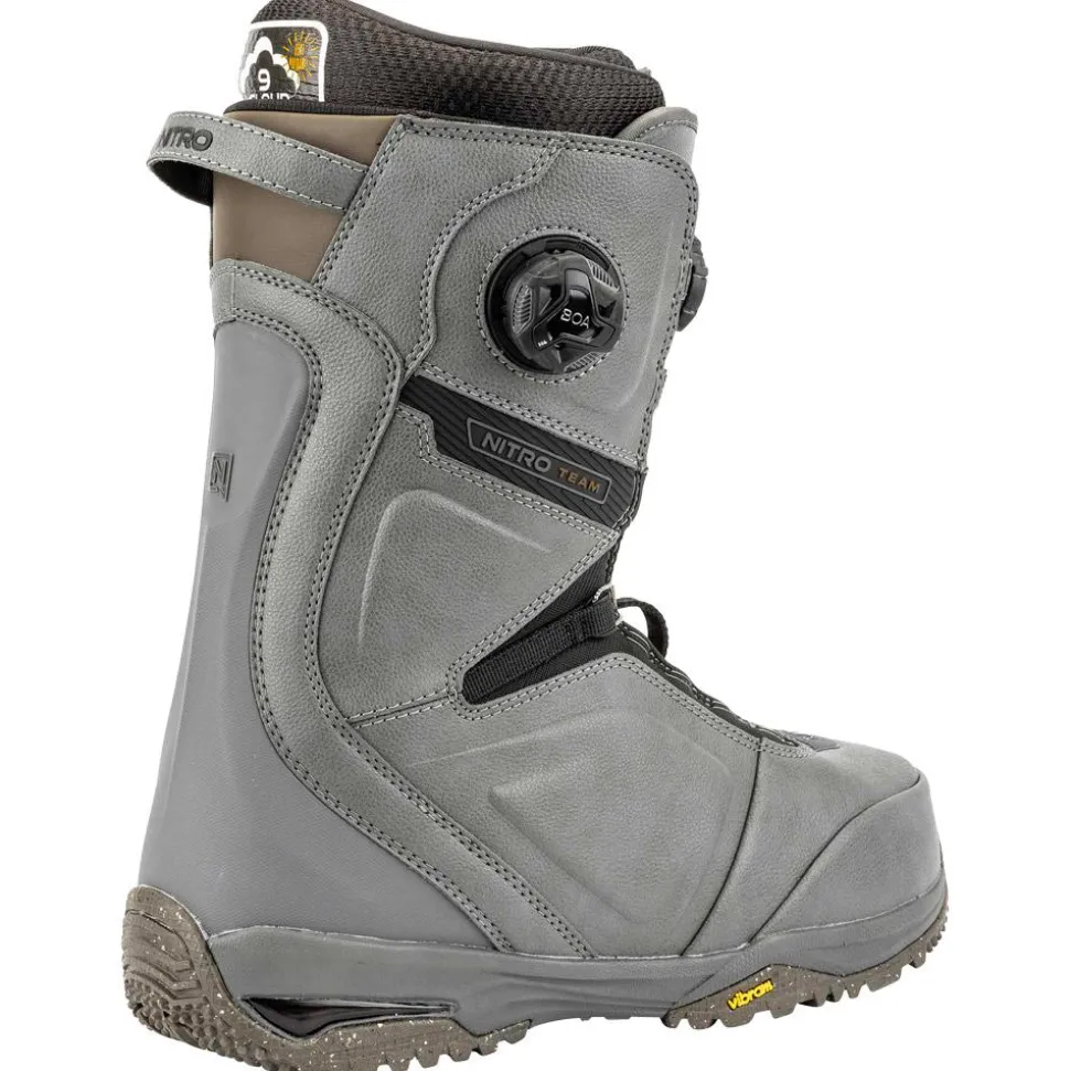 Munie d’une semelle externe Vibram et d’une molette de réglage Boa, la boots snowboardpolyvalente Nitro Team Boa Charcoal est performante et technique, et surtout très confortable.