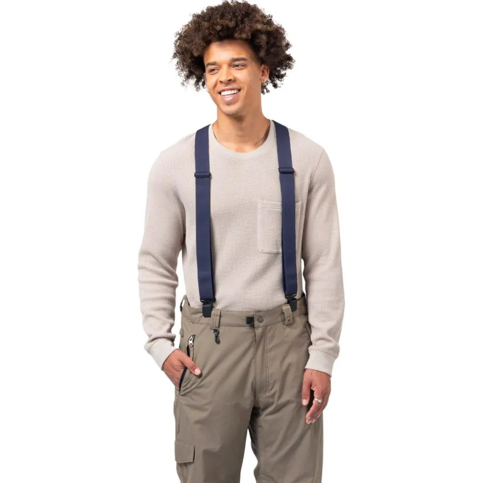 Les Jessup Suspenders Navy d’Arcade réinventent les bretelles traditionnelles avec une sangle robuste en polyester recyclé, pour un maintien durable et écologique.