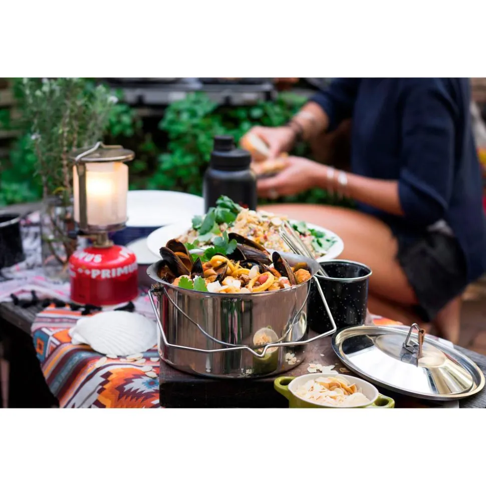 La Campfire Pot 3L de Primus est une casserole en acier inoxydable de 3 litres qui vous permettra de préparer une grande quantité de nourriture lors de vos bivouacs mais aussi dans votre cuisine lorsque vous ne serez pas en vadrouille. Son couvercle permet une utilisation sur feu ouvert et sa poignée est escamotable afin de faciliter le rangement.