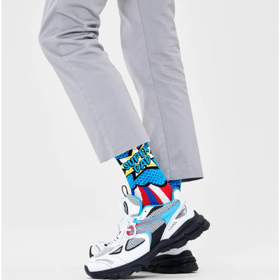 Cadeau de fête des mères, des pères, cadeau de tous les jours, ou cadeau pour vous-même, soyez un super parent avec ces chaussettes Happy Socks en coton respirant. Disponibles en version super mom ou super dad.