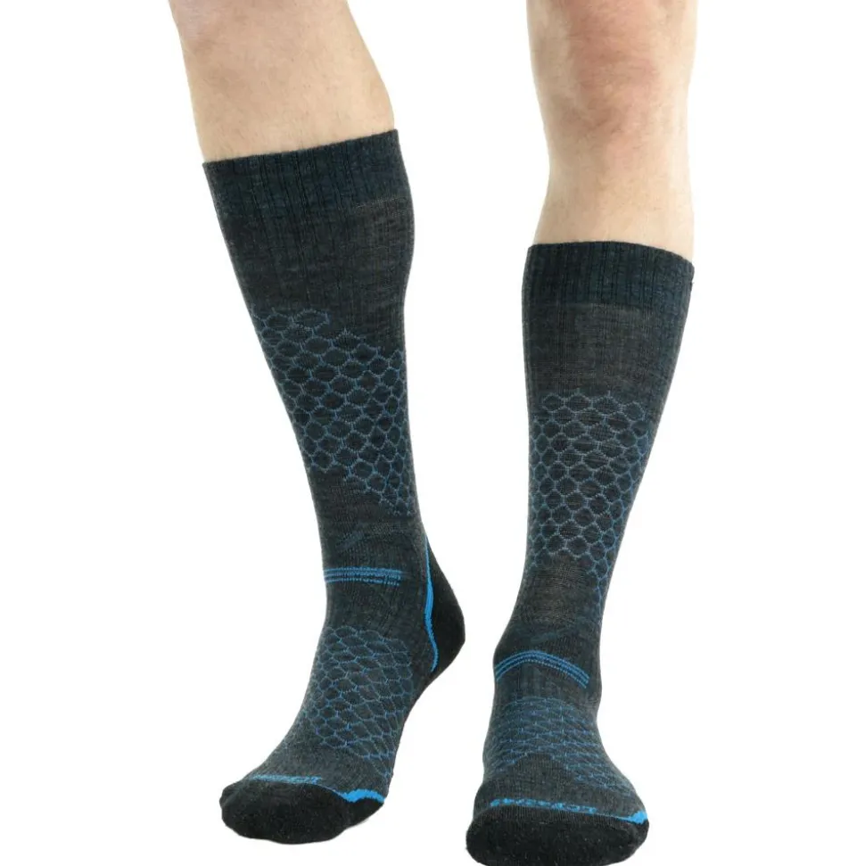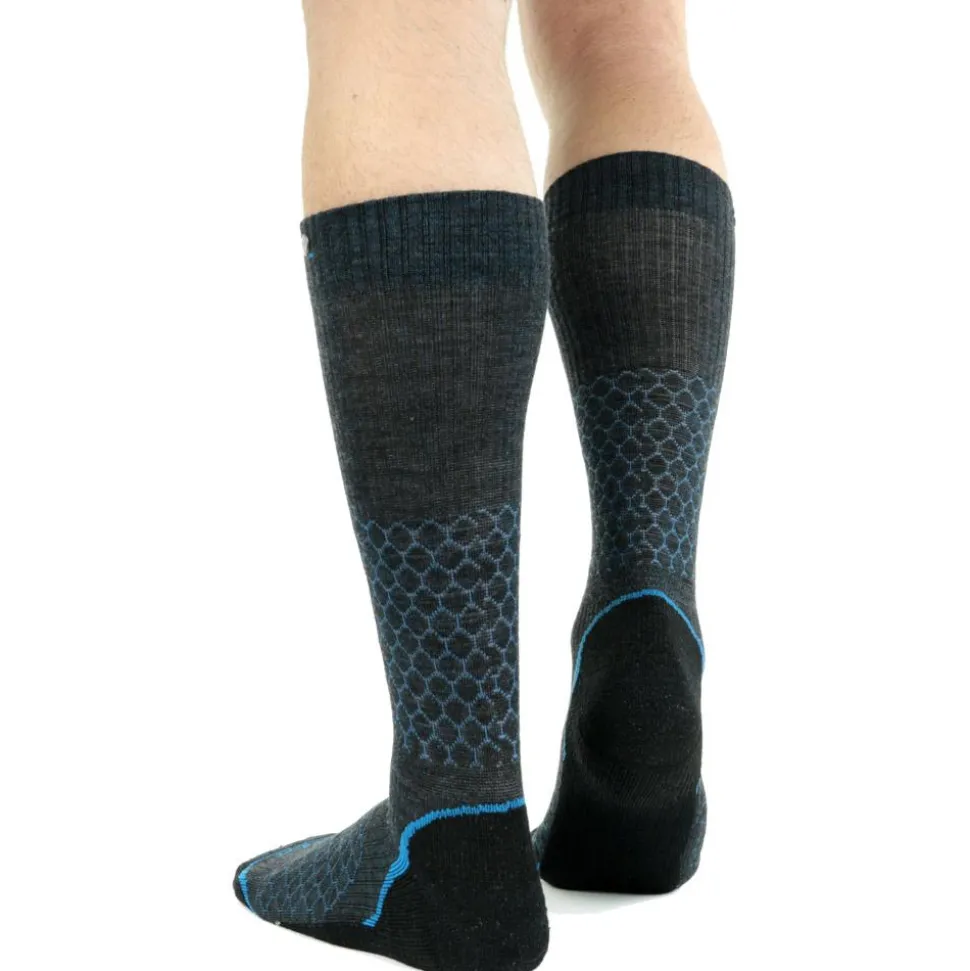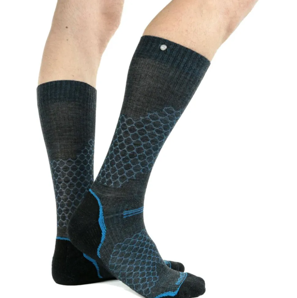 Conçue par Chaussette de France avec des fibres synthétiques et de la laine de mérinos, la chaussette de randonnée Glaciers Gris Bleu offre de bonne propriétés anti-bactériennes ainsi qu’une thermorégulation efficace.