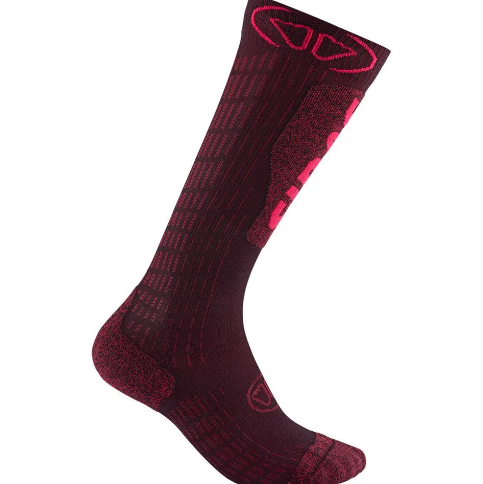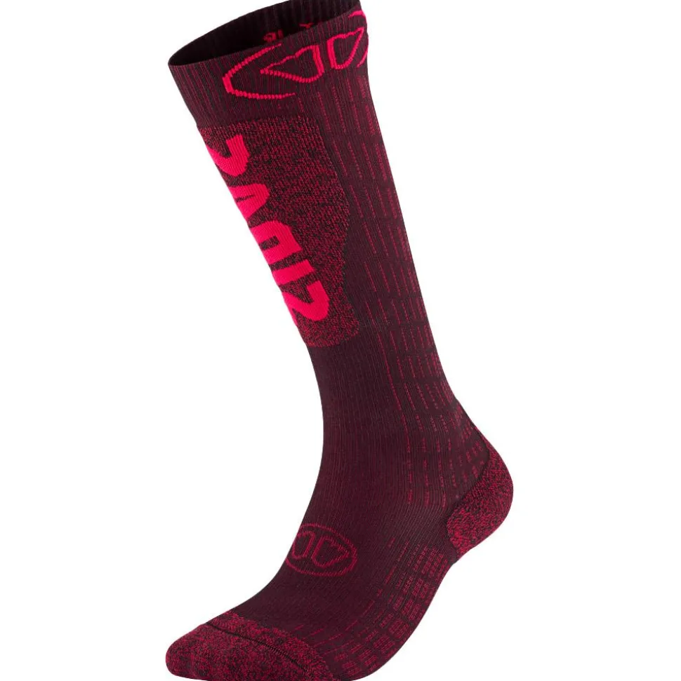 Fabriquées à 98 % de fibres recyclées, leschaussettesSidas Ski Expert Women Burgundy sontconçues anatomiquement avec des renforts stratégiques aux tibias, destalons et des orteils.