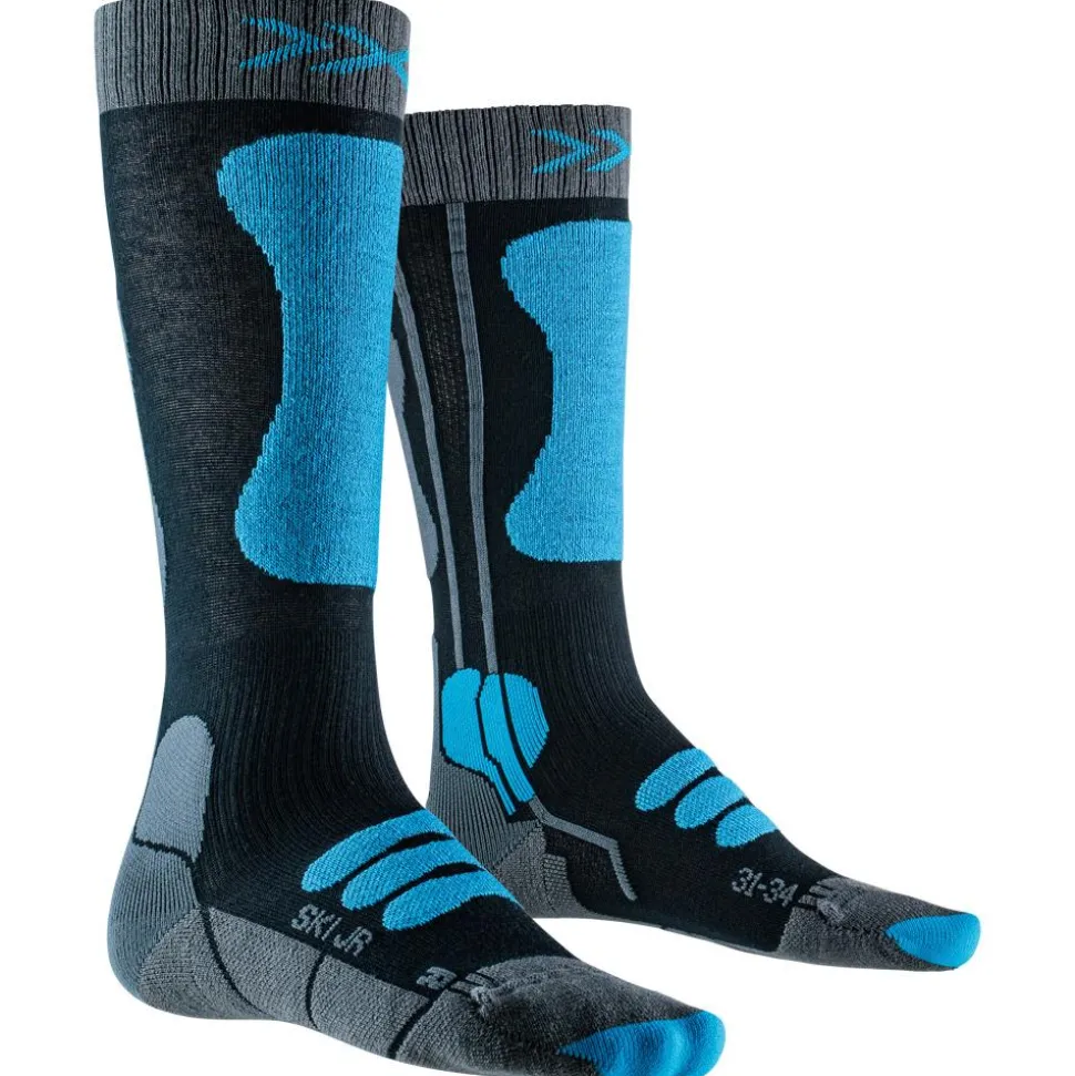 Les X Socks Ski Junior 4.0, en nuances anthracite et bleu galactique, garantissent aux enfants un confort adulte avec des renforts stratégiques et une douceur inégalée.
