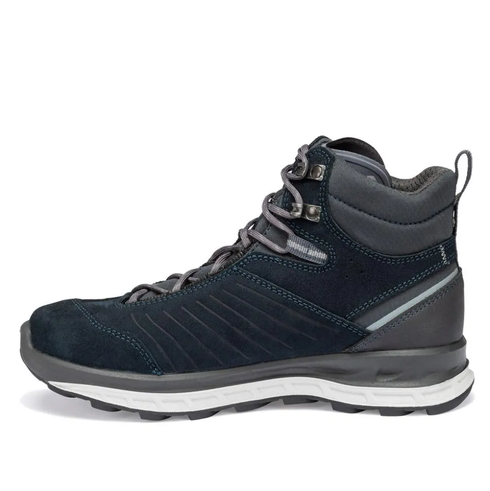 La chaussure pour femmes Blueridge Lady Es Navy Grey de Hanwag est adaptée à la grande randonnée, car ses matériaux sont légers, robustes et confortables.