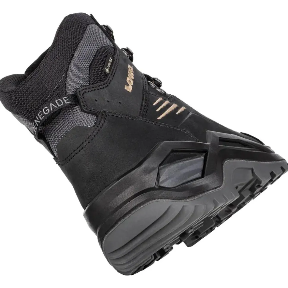 Les chaussures de randonnée Renegade Evo Gore-Tex Mid Black Dun de Lowa conjuguent confort, robustesse et imperméabilité pour une expérience de marche inégalée.