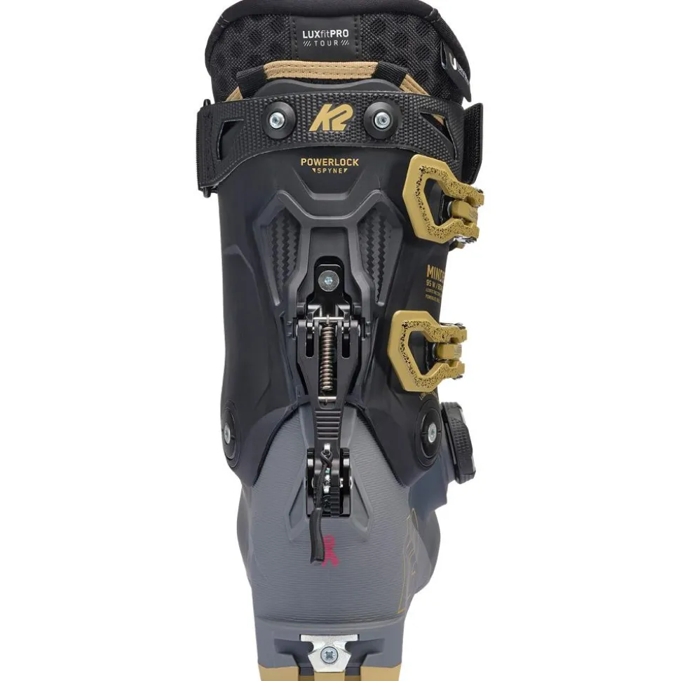 La K2 Mindbender 95 Boa W est idéale pour une utilisation mixte alpin/randonnée grâce à son système de position marche. Dotée du système de serrage BOA® Fit System, elle assure un ajustement précis et rapide. La coque Powerlite Shell et le chausson Lux Fit Tour Intuition offrent un confort optimal et une isolation thermique efficace. Les semelles GripWalk facilitent la marche, tandis que les inserts techniques intégrés et le pivot sans friction du collier améliorent la mobilité.