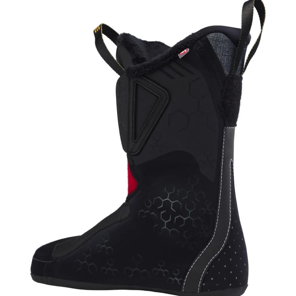 La Shadow 95 W MV GW trouve sa place sur tous les terrains, que ce soit en station ou lors de sorties plus engagées hors des pistes damées. Son flex intermédiaire de 95 apporte un soutien progressif, permettant d’absorber les vibrations tout en favorisant une transmission d’énergie naturelle et maîtrisée. Le système de serrage, assuré par quatre crochets aluminium, garantit une tenue fiable, tout en s’ajustant facilement selon les besoins. Son volume chaussant de 100 mm ne correspond pas seulement à la largeur du pied, mais détermine l’espace global disponible à l’intérieur de la chaussure. Ici, il offre un compromis idéal entre précision et confort pour les pieds fins, moyens ou larges en quête de réactivité.