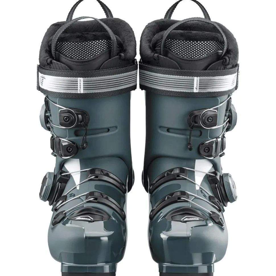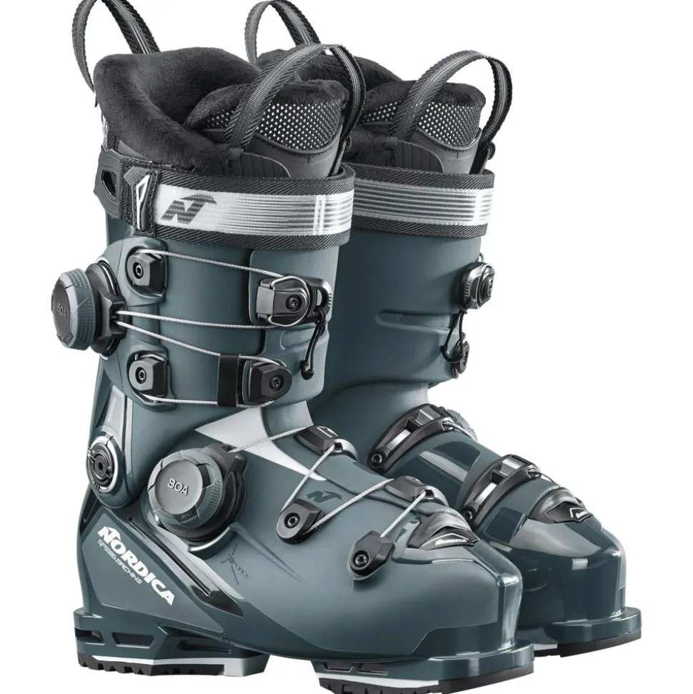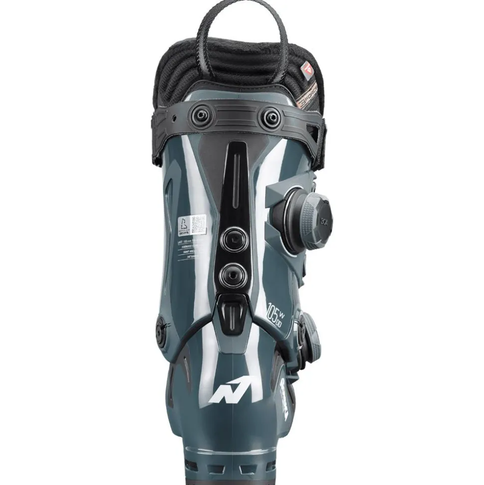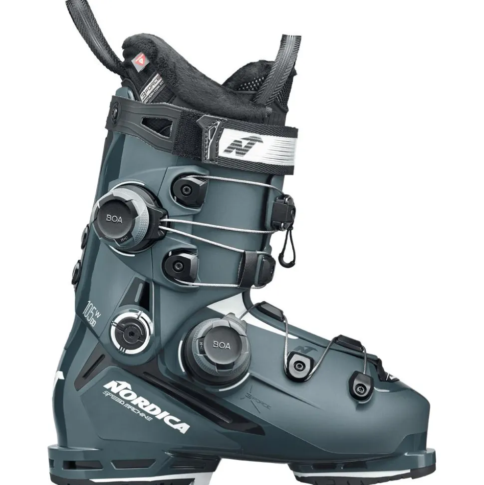 La Nordica Speedmachine 3 105W Boa DD Gw est une chaussure de ski dédiée à une pratiqueengagée. Elle affiche un flex de 105, ce qui vous garantit une certaine rigidité, pour un soutien solide dans les descentes sportives. Les 2 molettes de réglage Boa permettent un ajustement rapideet précis de la coque autour du pied et de la cheville. Ce serrage offre un maintient amélioré et moins de points de pression comparé à des crochets traditionnels. Ces molettes sont complétées par un strap Velcro de 35 mm pour affiner le maintien au niveau du tibia et du mollet. Cette chaussure est compatible Grip Walk, vous donnant une meilleure accroche pendant la marche. Le chaussant de 100 mm permet aux skieuses qui ont un pied de largeur moyenne de privilégier le confort, tandis qu’il permet de privilégier la précision pour celles qui ont un pied un peu plus large.