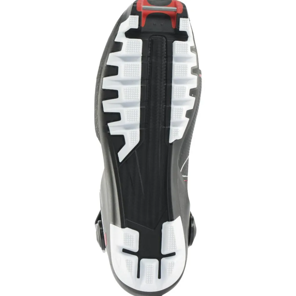 Les chaussures de ski de fond ont connu d’énormes évolutions ces dernières années, les marques soucieuses d’offrir des modèles de plus en plus pointus ont fait un bond en avant gigantesque, et depuis deux ans une tendance se confirme. L’apparition du carbone compressé qu’on ne voyait pas avant 2020 commence à gagner en popularité. Ce concept de fabrication moins couteux que du carbone tressé et moulé offre maintien, dynamisme et précision. Raison pour laquelle il est de plus en plus utilisé. Cette nouvelle X-IUM WC pour femme est munie d’un couple châssis/collier carbone compressé qui gagne en efficacité face à l’ancienne version Composite. Plus de rigidité mais une structure 3D qui conserve la tolérance de collier bien connue du modèle X-IUM WC. Ultra stable en patinage, excellente flexion de cheville, tous les arguments sont réunis pour en faire un modèle performant et accessible. Le chaussant est adaptée à la morphologie féminine, plus étroit que celui du modèle unisexe avec 93mm de largeur aux métatarses il reste cependant hyper confortable avec une découpe arrondie qui laisse toujours de la place et un peu plus d’air pour l’isolation. Système de laçage rapide Speedlace Lock pour un serrage rapide et précis, fermeture centrale, Rossignol a conservé les concepts qui fonctionnaient en ajustant son collier et ses contreforts pour gagner en performance et accroître le maintien. Une très belle chaussure pour femme qui confirme si besoin est que Rossignol est aujourd’hui les des meilleurs chausseurs en ski de fond.