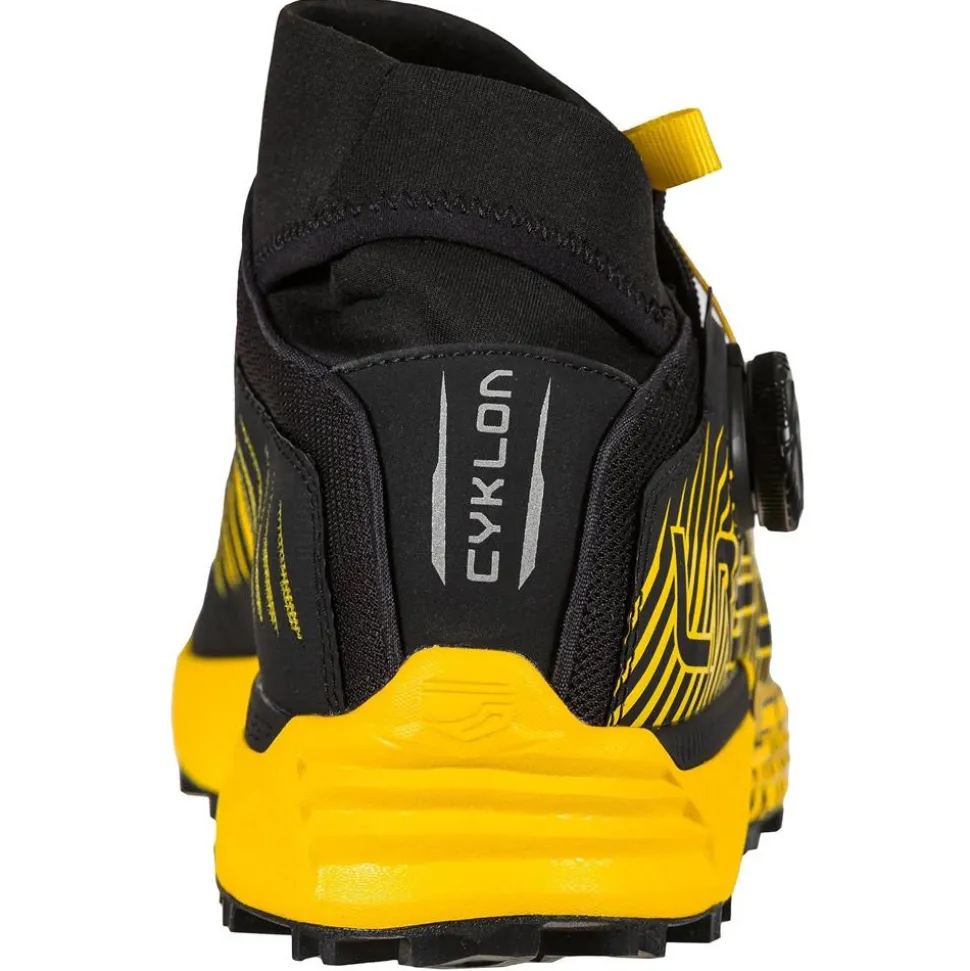 La Cyklon Black Yellow de La Sportiva est une chaussure de trail très à l’aise sur les terrains gras et boueux. La languette enveloppante avec guêtre intégrée empêche l’intrusion d’éléments extérieurs. Le système Boa assure un maintien optimal.