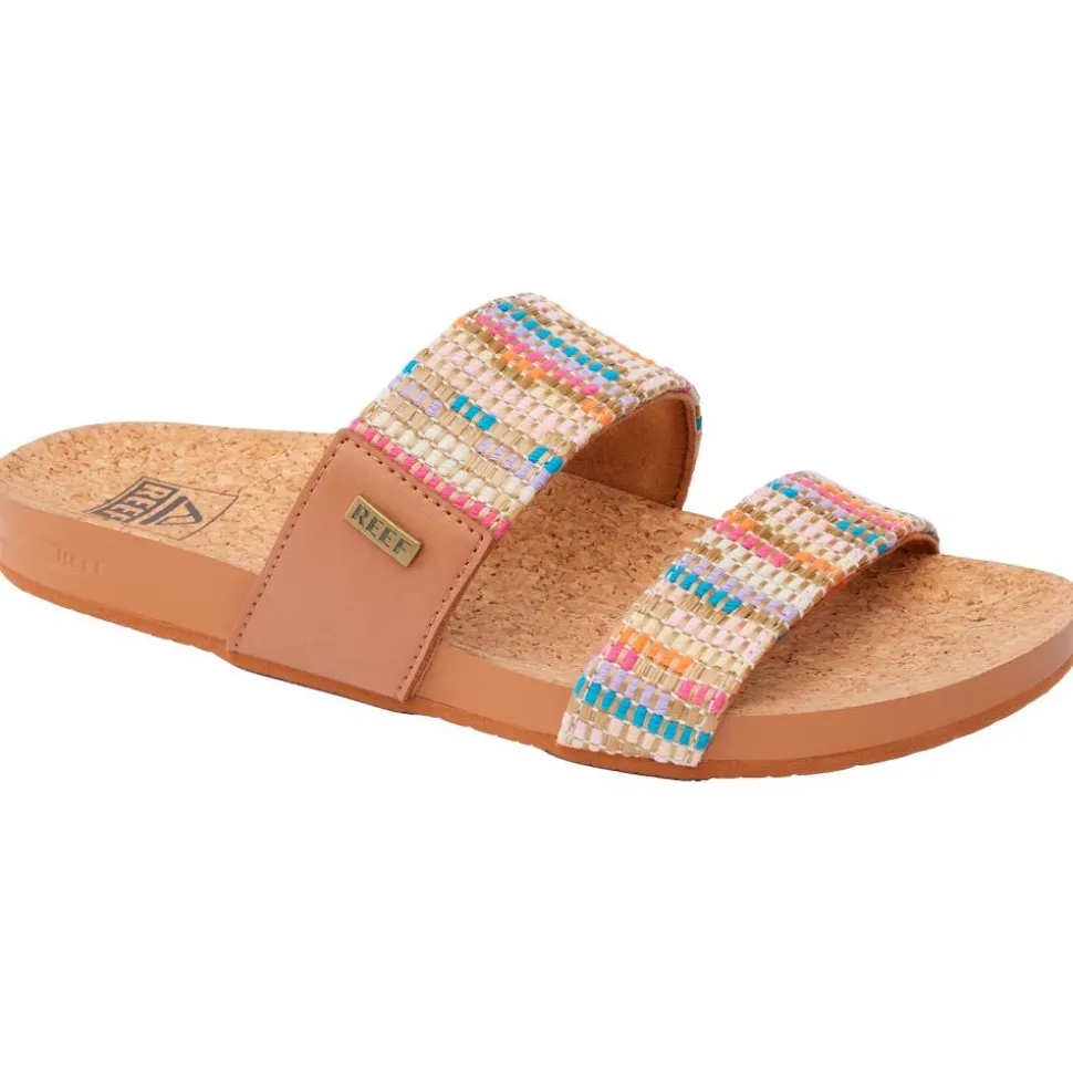 Les claquettes Reef Cushion Vista pour femmes allient confort et durabilité avec leurs brides en cuir végétalien et leur semelle rembourrée.