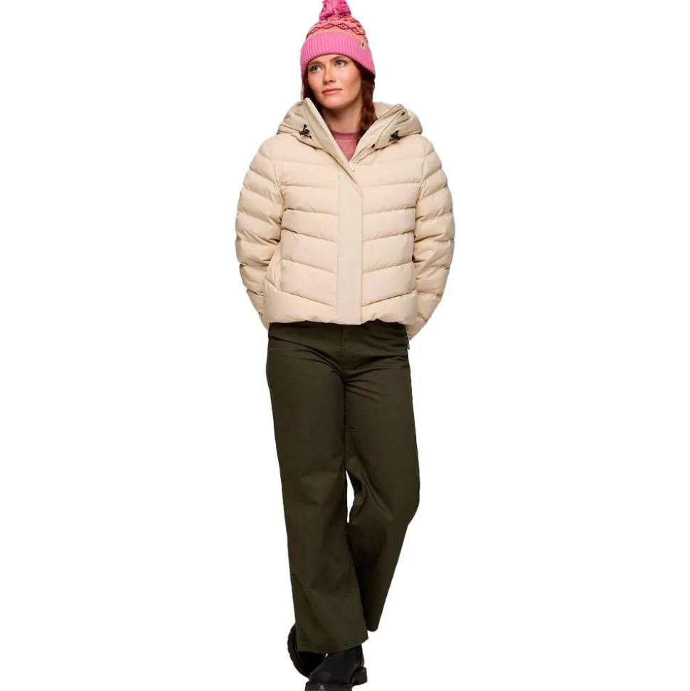 Le traitement déperlant renforce sa capacité à faire face à l’humidité, si quelques flocons se mettent à tomber ou si une averse de pluie légère survient dans un laps de temps assez court. L’isolation en duvet 650 fill d’origine responsable permet de rester au chaud lors des journées fraîches. Côté pratique, vous pouvez compter sur le protège-menton au niveau du col montant, sur les poches latérales, la poche poitrine intérieure, ainsi que sur la capuche.