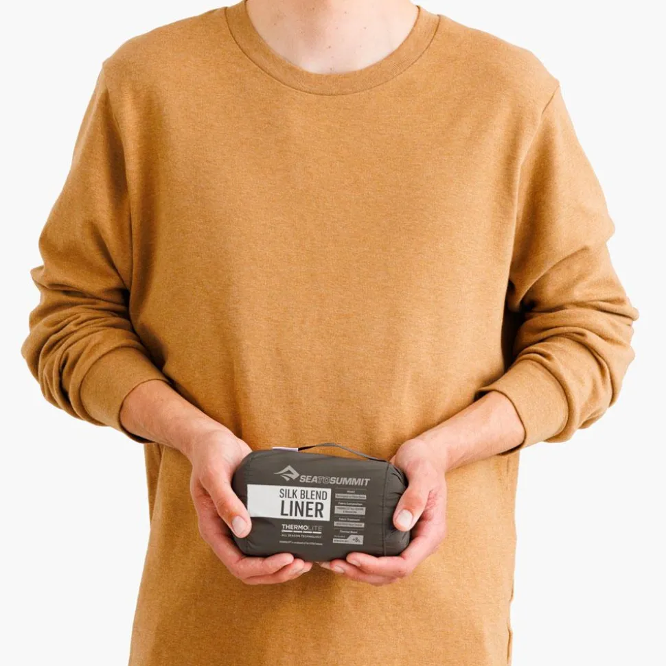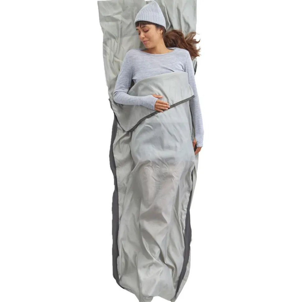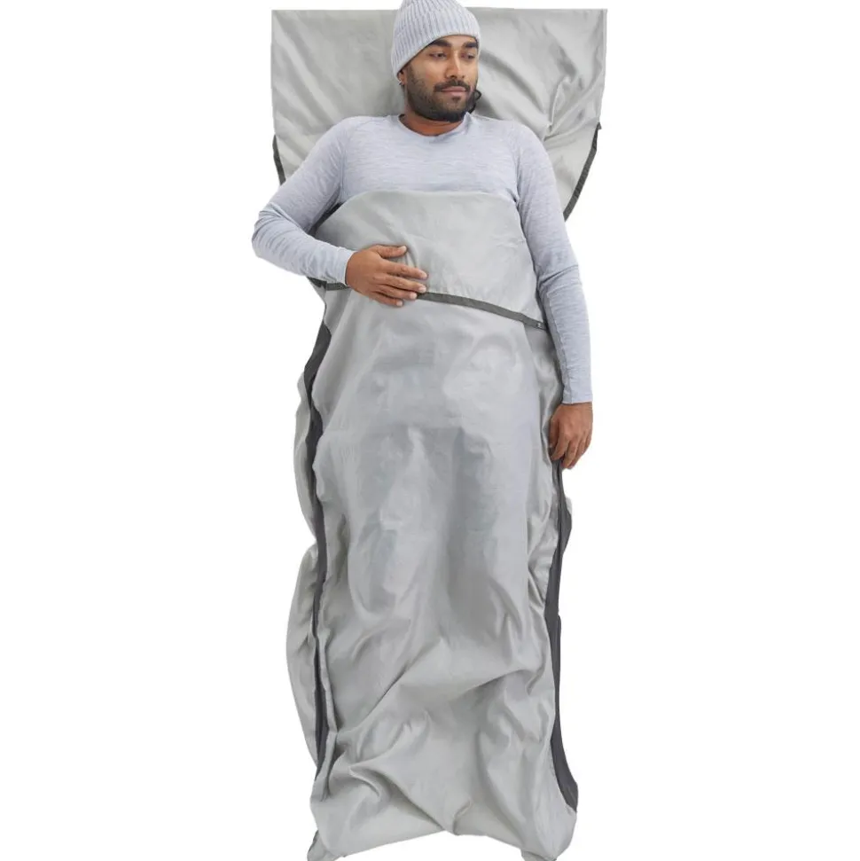 Le Sea To Summit Silk Blend Rectangular w/ Pillow Sleeve est un drap de sac léger et isolant avec manchon d’oreiller.