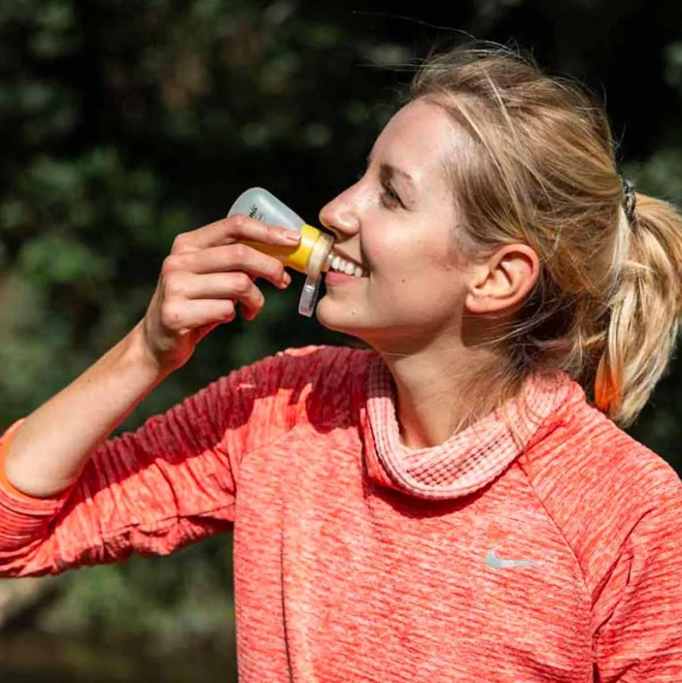 La Fiole Éco Rechargeable 60 ml de Meltonic, conçue ensilicone alimentaire sans BPA. est une option légère, durable et pratique pour transporter 5 doses de gels énergétique.