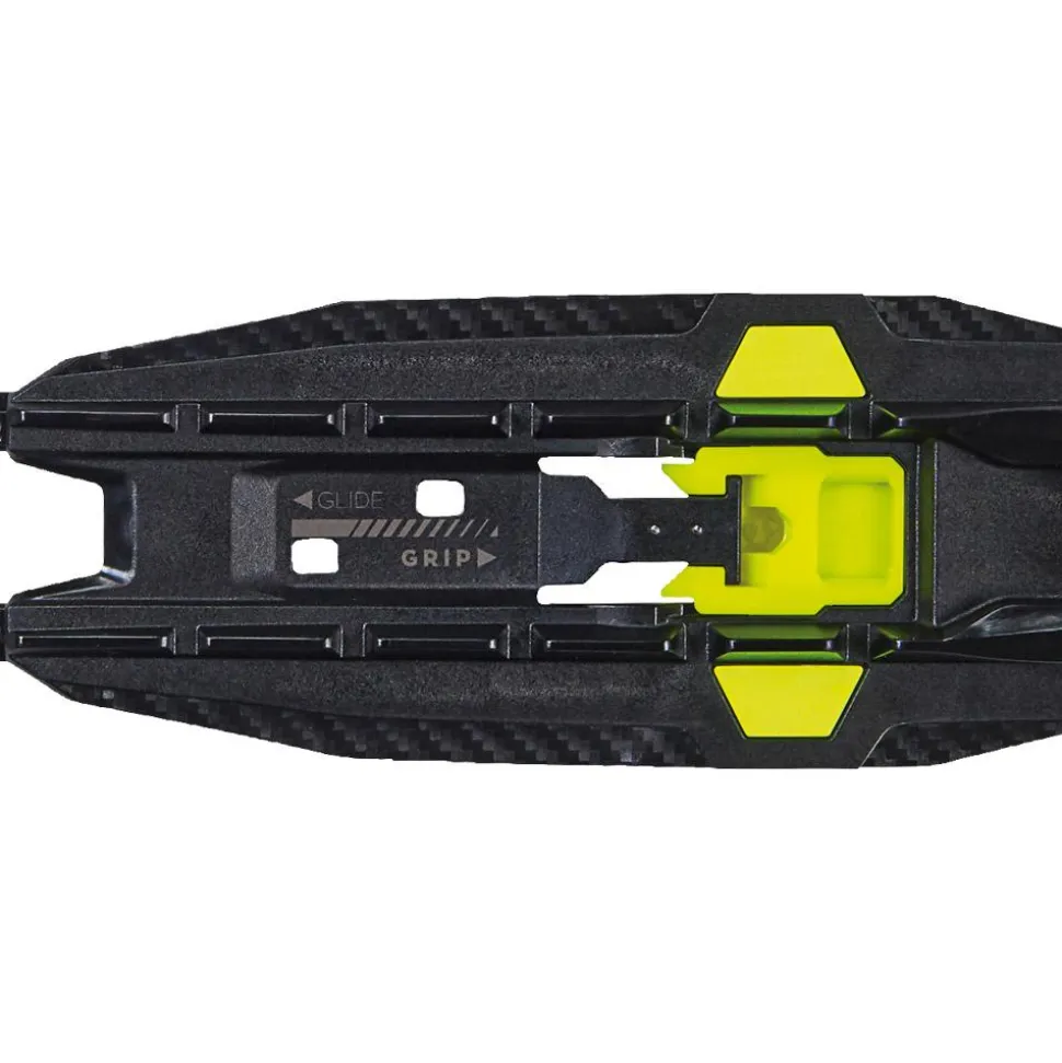 Le chaussage est un peu moins aisé que sur la version Race Pro, car elle est équipée d’un nouveau système de blocage fait pour éviter les déchaussages intempestifs. Ce bloqueur est directement intégré au levier rotatif et le verrouille latéralement. Cette version World Cup a été conçue à la demande des athlètes qui souhaitent une sécurité supplémentaire très utile sur les sprints massifs lors desquels un coup de ski pouvait débloquer le levier. Question manipulation, pour le débloquer il faut le lever avant de faire tourner la fixation, et le rabaisser une fois le ski chaussé. Le reste de la fixation est identique à la version Race Pro, on retrouve donc des platines larges qui octroie un transfert d’énergie optimal en poussée. Les deux rails de guidage permettent une excellente conduite du ski sur les portions techniques. Le Flex 7.0 permet un déroulé de pied homogène en propulsion. Très utile pour les courses de masse bien que moins pratique au chaussage, cette version World Cup offre une sécurité supplémentaire très bien conçue.