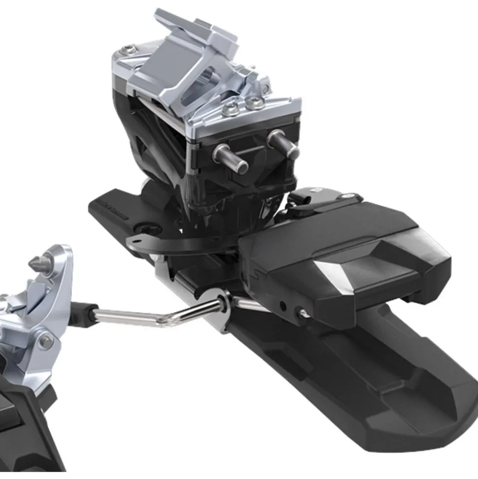 Sa valeur de déclenchement maximale est de 10. Ici équipée d’un stop ski de 100 mm de large, elle pèse environ 1 040 grammes la paire.