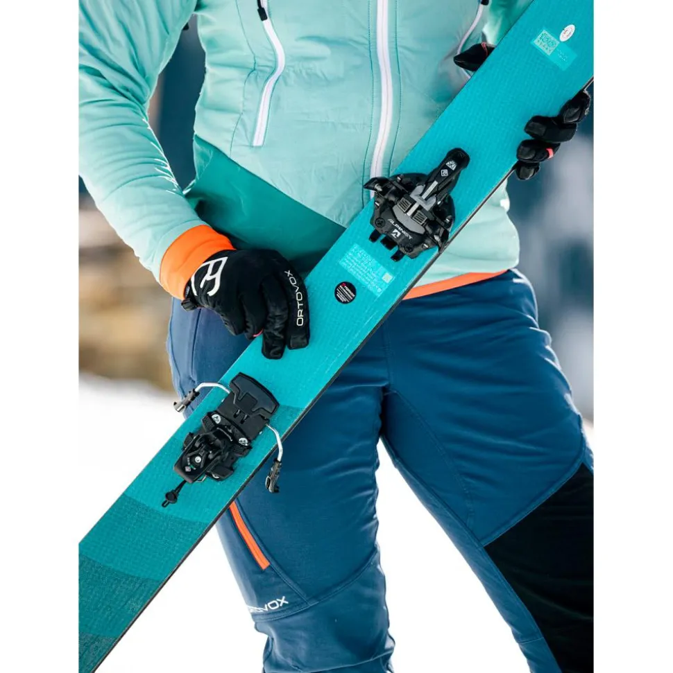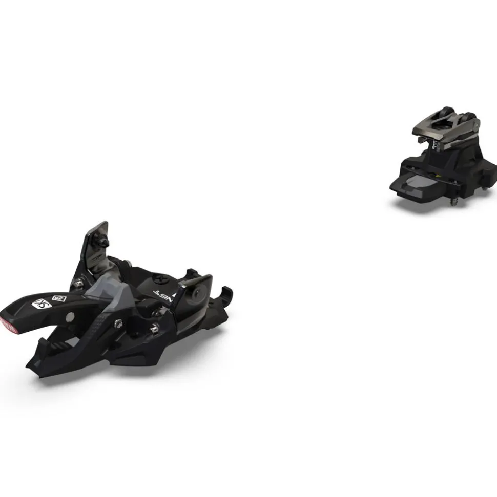 Elle intègre une butée avant renforcée en carbone pour assurer un excellent compromis poids/rigidité, ainsi que des pads en élastomère anti-glaces afin de faciliter le chaussage. La talonnière dispose d’une cale à trois niveaux qui permet de choisir entre 0°, 5° et 9° tout en pouvant passer facilement du mode montée au mode descente. Il vous est également possible d’ajouter des stop-skis (compatible avec les freins Marker Alpinist). Enfin, ce modèle offre un ajustement total de 15 mm et une plage de réglage DIN qui s’étend de de 4 à 10.