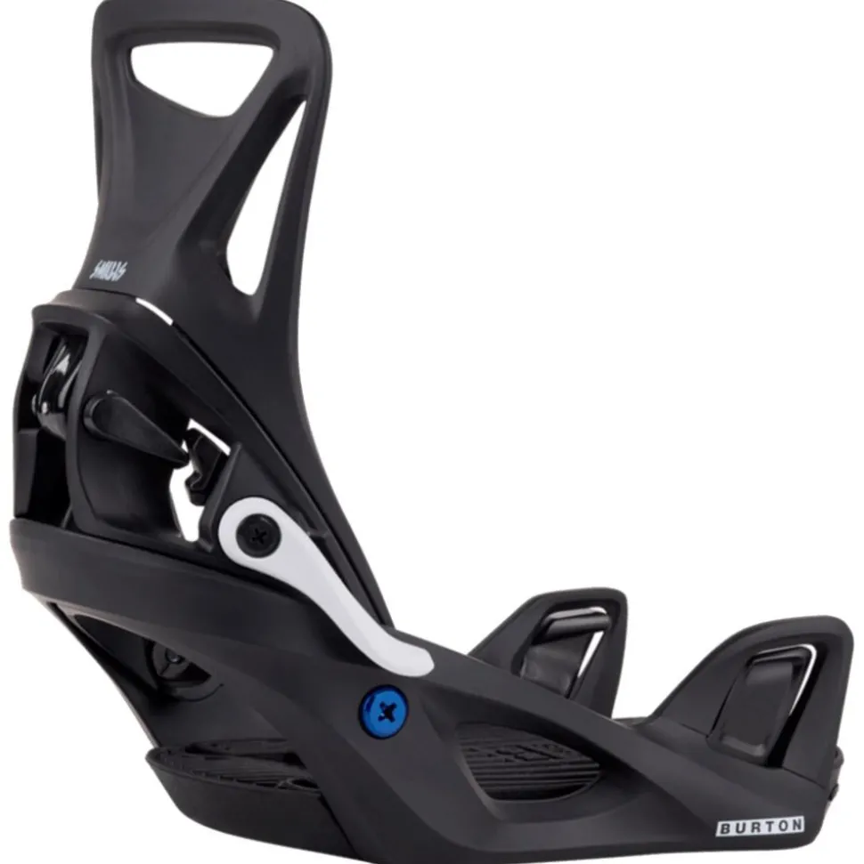 La technologie Burton Step-On n’est pas seulement pratique et rapide, elle élimine aussi les inconvénients et l’inconfort des straps des fixations traditionnelles. Cette innovation donne une sensation d’autonomie inédite. Les chaussures conçues pour ce système possèdent un renfort au niveau du cou-de-pied pour pallier l’absence de straps. La fixation elle-même se compose simplement d’un spoiler et d’un châssis, conçus en polycarbonate solide pour le modèle Step-On Kids, garantissant une excellente transmission des mouvements. Cette configuration est parfaite pour des descentes dynamiques, que ce soit sur piste ou hors-piste.