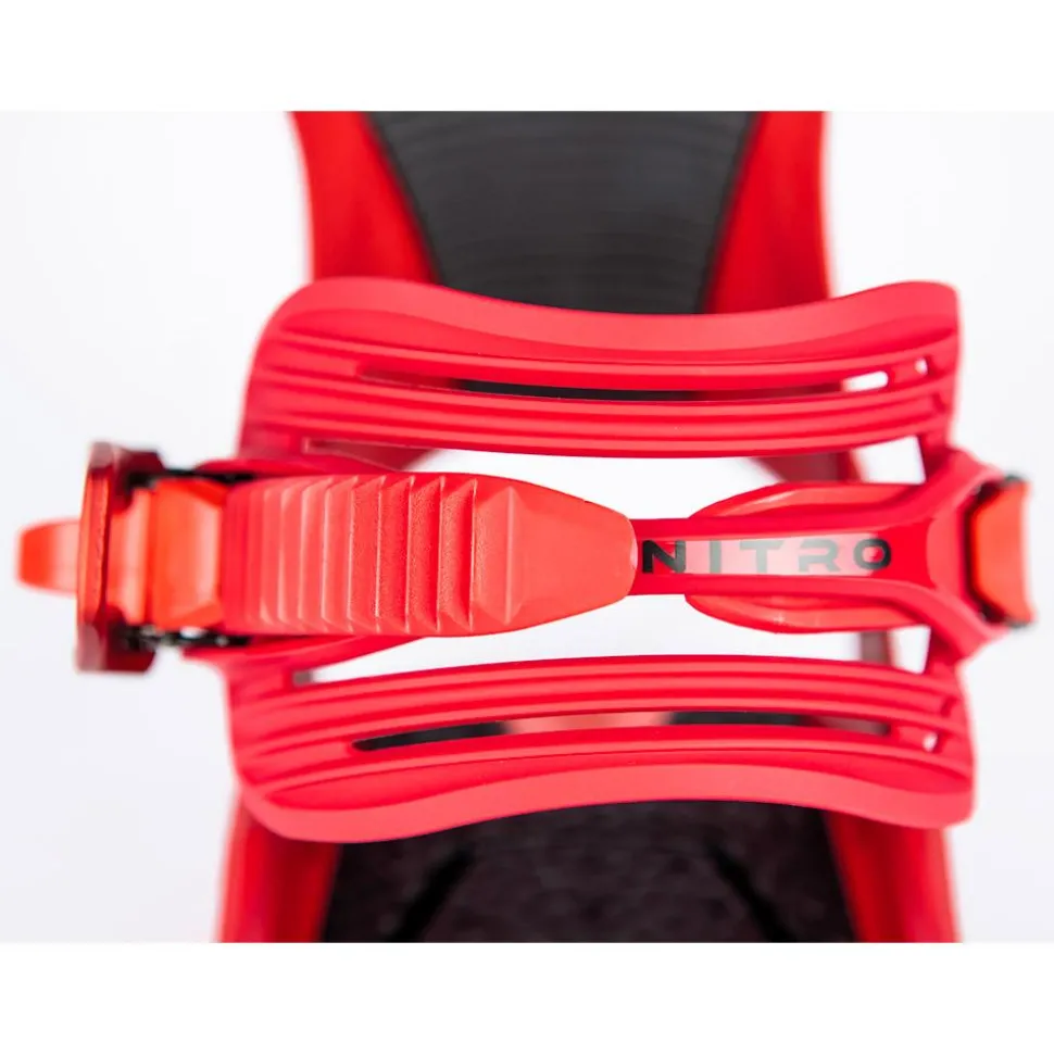 Caractérisée par son spoiler X-Beam, facilement identifiable par sa forme en X, elle offre un soutien optimal en appui backside, tout en conservant une grande liberté de mouvement latérale, très appréciée en freestyle. Cette caractéristique vous permet d’attaquer les virages tout en conservant une certaine jouabilité pour réaliser des tricks avec facilité. La semelle inclinée de 3°, la qualité des straps et la technologie Air Dampening offrent un confort et un amorti haut de gamme, prenant soin de vos articulations et de vos pieds sur tous types de terrains. Les mini discs de Nitro préservent le flex de votre board afin de ne pas altérer son comportement sur la neige. Enfin, l’embase renforcée en fibres de verre, les leviers renforcés et les boucles en aluminium forgé font de cette fixation un modèle à la fois léger et robuste.