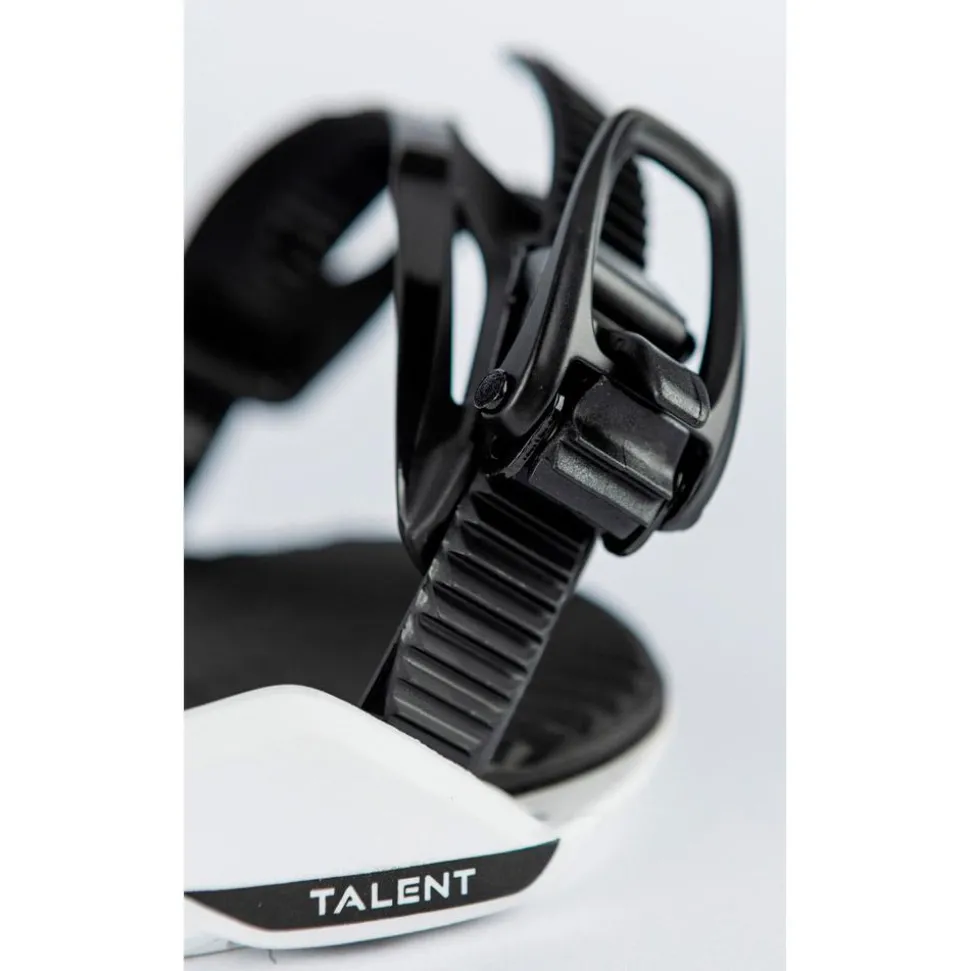 La Nitro Talent est une fixation unisexe pensée pour les riders qui veulent tout faire en station, sans se ruiner. Fidèle à la réputation de qualité de Nitro, elle embarque un châssis avec footbed légèrement incliné à 3° pour une position plus naturelle et confortable, un amorti EVA efficace, ainsi que des straps robustes Cable Connector et Ubergrip Toe Strap by Vibram® pour un maintien précis et durable.
