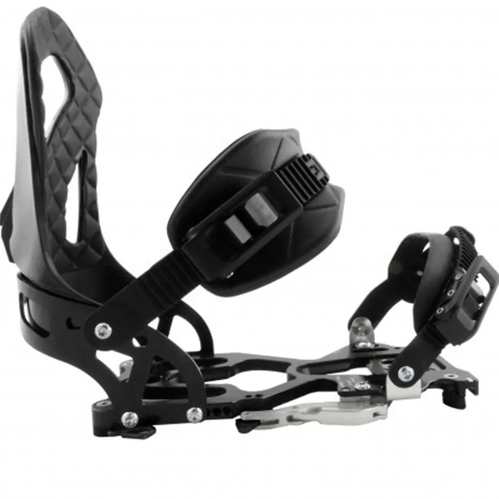 L’Eterlou est dotée d’une embase légère et robuste en Aluminium qui offre une bonne transmission des appuis tout en assurant la connexion avec votre splitboard et votre interface, via un système de levier sur le côté. Fiable et rapide à utiliser, l’Eterlou vous offre également de la légèreté à la montée avec un poids correct d’environ 795 grammes par fixation, tandis que la rigidité du châssis, la réactivité du spoiler et le bon maintien des straps permettent d’engager dans les appuis à la descente. Elle reste confortable à rider, ce n’est pas le spoiler le plus rigide de la marque et il garde donc un peu de flexibilité en torsion pour plus de confort dans les appuis backside.