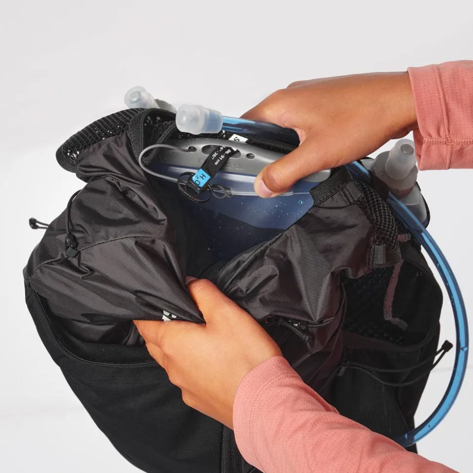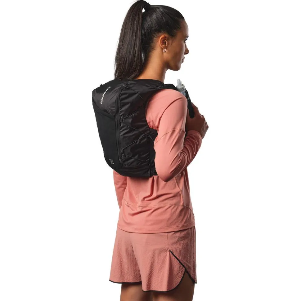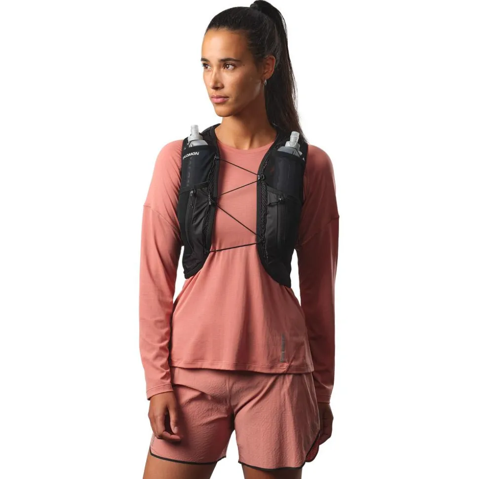 Modèle léger et résistant conçu pour les femmes, le gilet trail Salomon Active Skin 12 Women Set Black Metal permet d’emporter suffisamment d’eauavec soi et les différents équipements qui vous sont nécessaires.