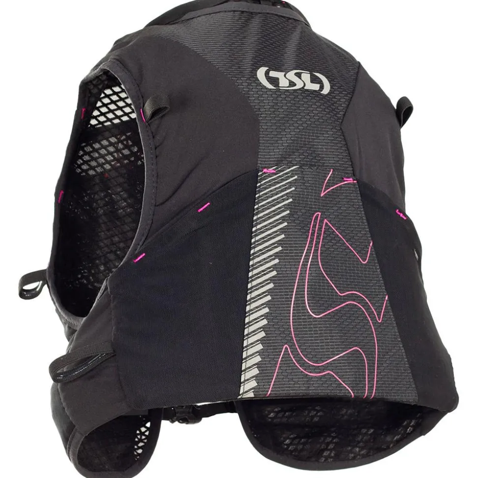 Le gilet trail TSL Finisher 5 + 2 Flasks Souples 500 ml offre légèreté, ajustabilité et sécurité avec ses fonctionnalités réfléchissantes et ses multiples poches.