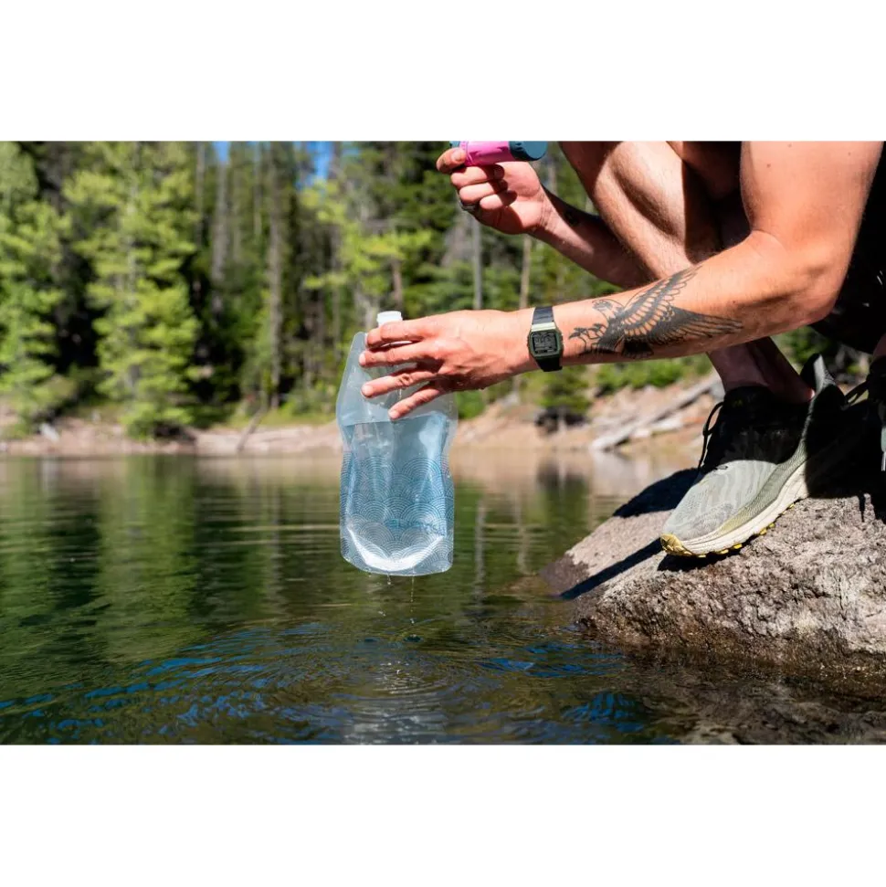 La Platypus SoftBottle 1L Waves est une gourde flexible et légère qui optimise le stockage et la filtration de l’eau grâce à sa compatibilité avec les filtres QuickDraw.