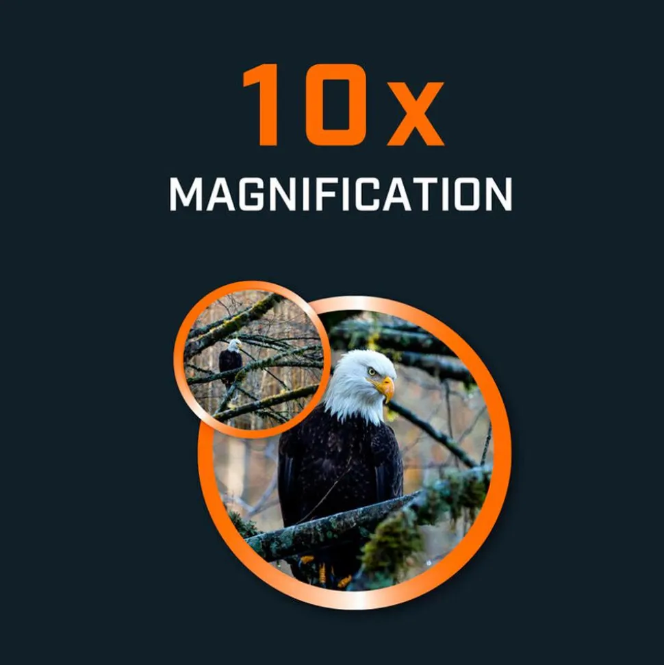 Vous aimé être souvent près de l’eau ou vous cherchez simplement des jumelles résistantes pour vos excursions ? Les Bushnell H2O 10×25 devraient vous satisfaire. Elles sont en effet étanches avec la norme IPX7 qui permet de les immerger pendant environ 30 minutes dans une profondeur maximum d’un mètre. Elles bénéficient également d’un traitement antibuée pour une vision toujours claire. Les lentilles justement sont multicouches et améliorent les couleurs et les contrastes. Les prismes BAK-4 viennent ajouter une résolution plus élevée et plus de détails. D’un grossissement x10, vous pourrez observer votre environnement de façon très précise avec une mise au point facile grâce à la molette de réglage. Conçues pour vous accompagner un peu partout, ces jumelles sont fabriquées en aluminium léger et durable le tout dans un format compact. Leur texture antidérapante assure une prise en main sûre pour réduire les risques de chutes.