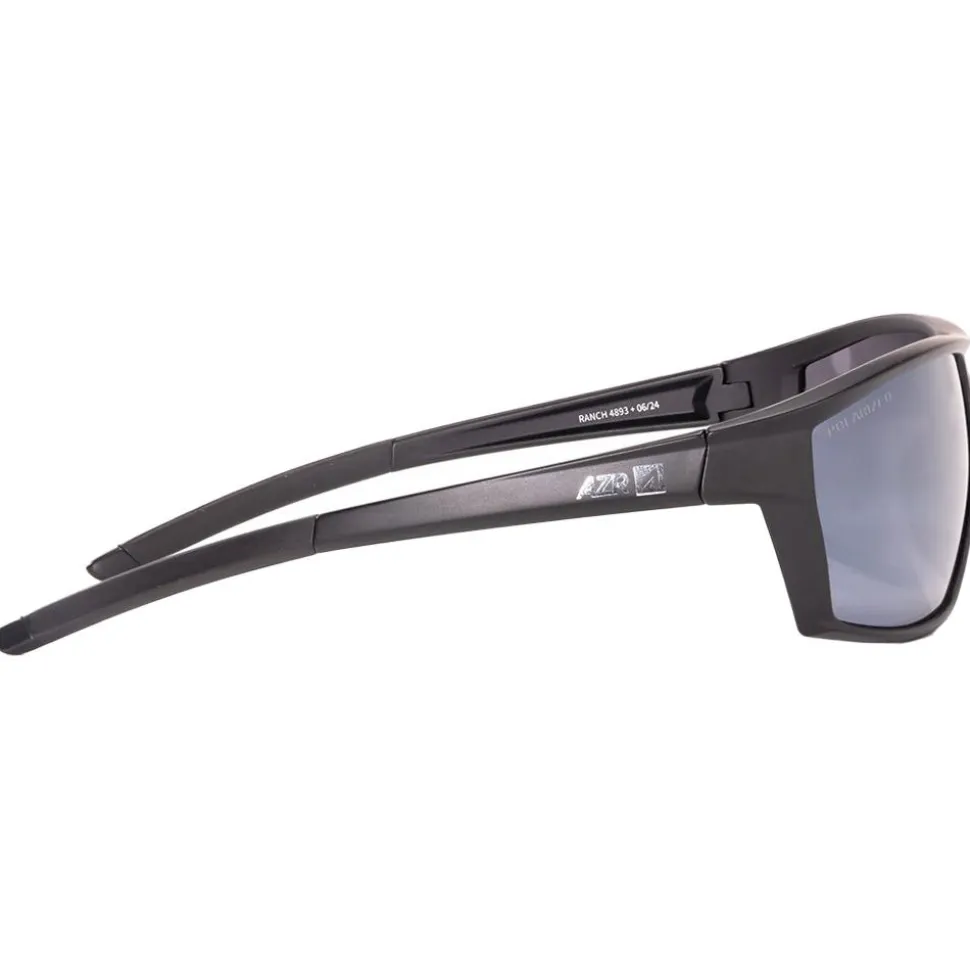 Les lunettes de soleil AZR Ranch Crystal Noire Mate Gris Miroir Polarisant allient style et fonctionnalité avec leur monture légère en polycarbonate et verres polarisés réduisant les reflets pour un confort visuel optimal.