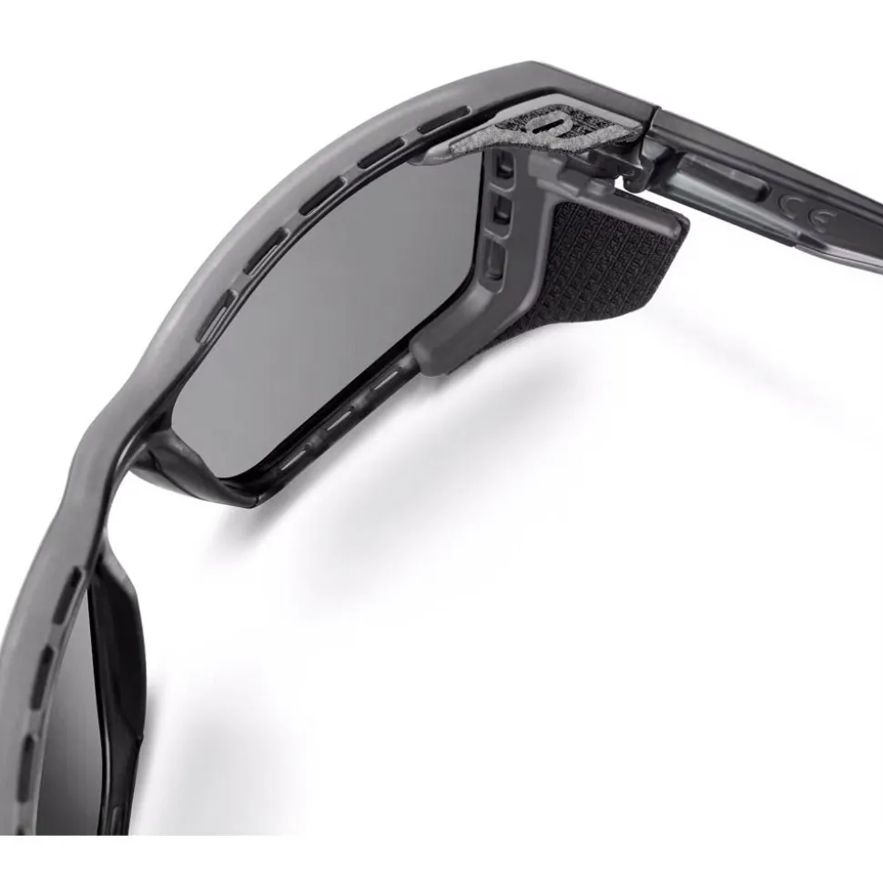 Dans la famille des lunettes glacier, les Shield ont tout pour ravir les accros du cross-mountain. Les coques latérales protègent complètement vos yeux contre tous les éléments de la nature (soleil, vent, débris, poussière), elles sont également amovibles pour une utilisation plus urbaine des lunettes de soleil. Côté stabilité, les bouts de branches et les plaquettes sont en grip, un caoutchouc très doux et très adhérent. Enfin, avec le système de ventilation Air flow, l’air circule librement dans la monture afin de limiter la formation de buée sur les verres.