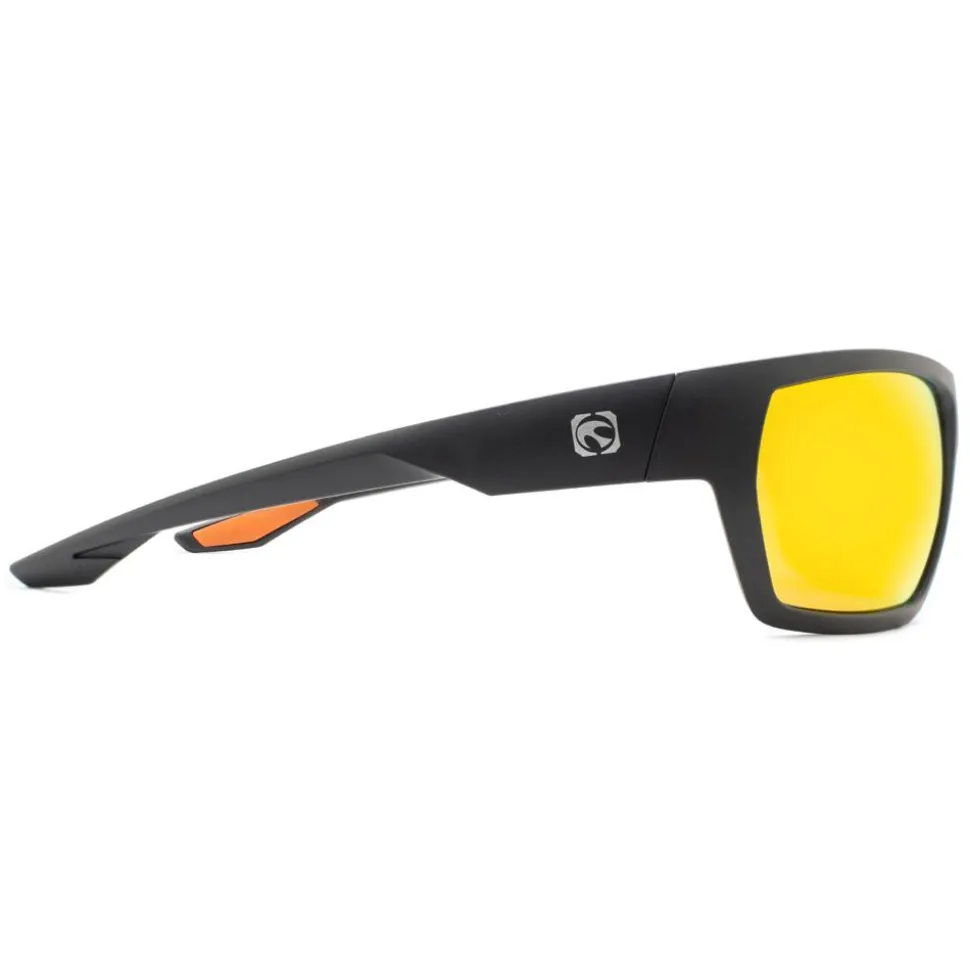 Super look avec les lunettes sport polarisantes Mundaka Optic Cierzo Matte Black Smoke Orange Revo Cx Polarized dont la monture parfaitement couvrante arbore des courbes tout en douceur