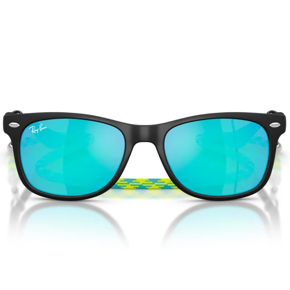 Les lunettes de soleil Ray-Ban New Wayfarer Kids Polished Black Light Green Blue Mirror allient style emblématique et confort pour les enfants, avec un verreminéralde catégorie 3idéal pour une vision claire et contrastée par temps ensoleillé.