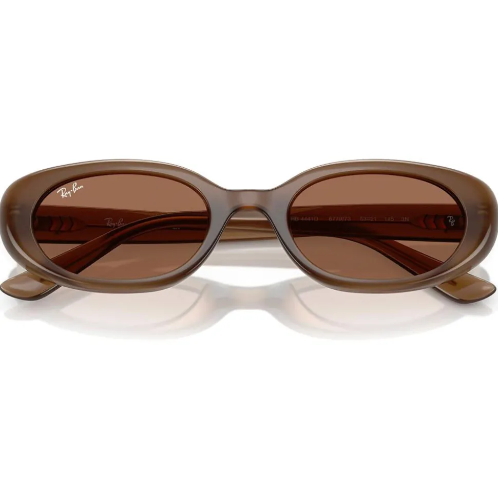 Les lunettes de soleil Ray-Ban pour homme RB4441D Matte Brown Opaline Dark Brown allient légèreté et robustesse avec une monture en plastique injecté et des verres minéraux de haute qualité.
