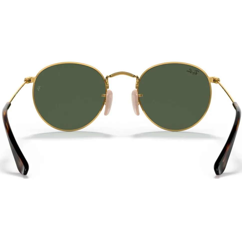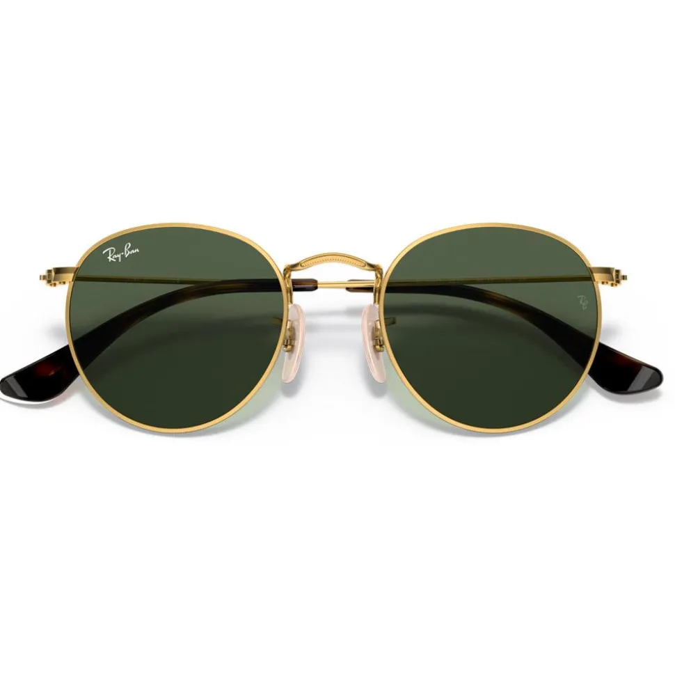 Les lunettes de soleil Round Kids Polished Arista Gold Dark Green de Ray-Ban combinent style rétro et verre minéral protecteur pour une vision parfaite en plein soleil.