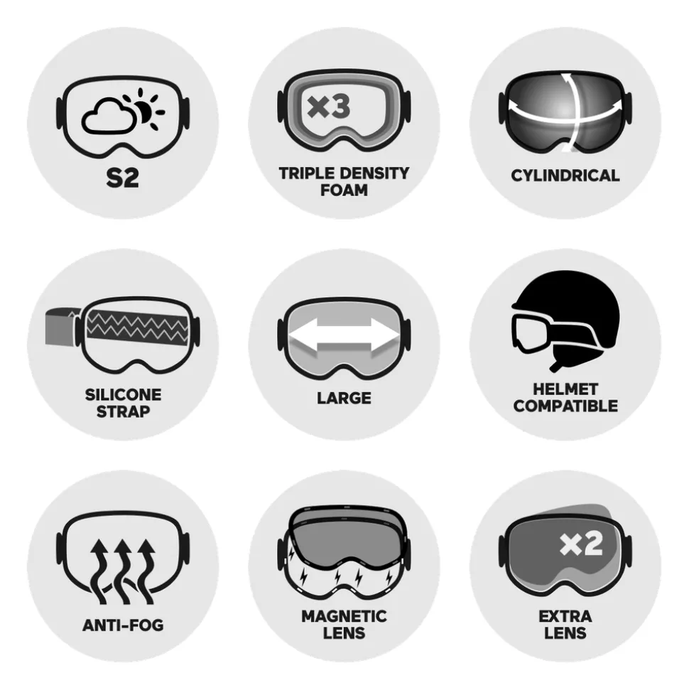Ecran cylindriqueExpansion ViewTraitement Anti-buéeStrap siliconéMousse triple densitéCompatible avec le port du casque -