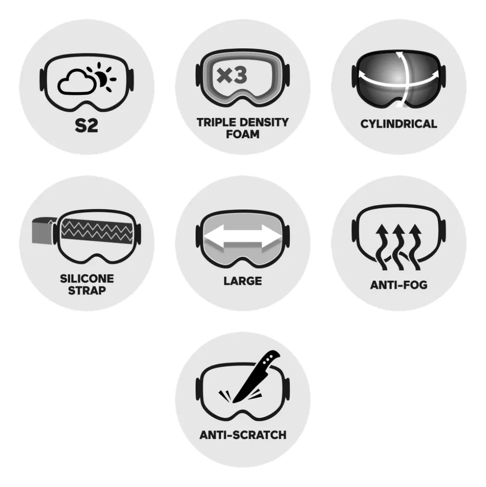 Ecran cylindriqueTraitement anti-buée et anti-rayuresMousse triple densitéStrap siliconé -