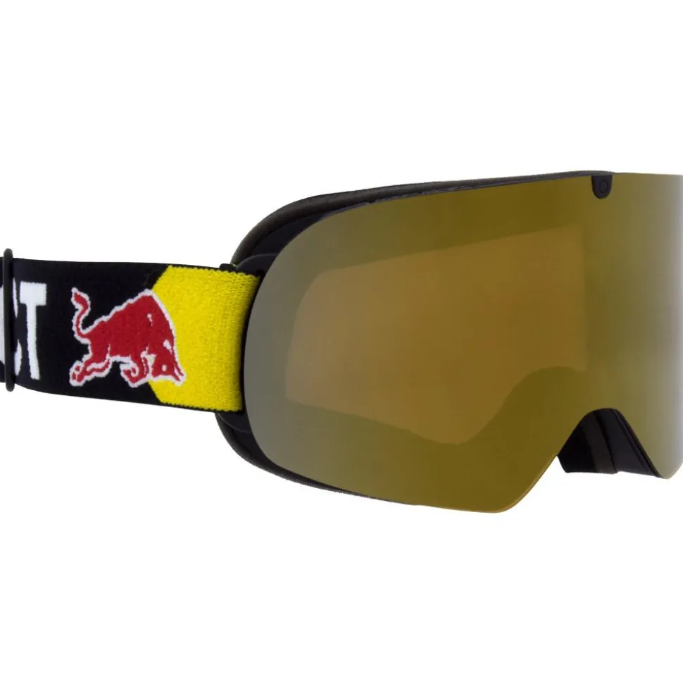 Avec son écran cylindrique, le masque de ski et de snowboard Red Bull Spect Soar Matt Black Orange Gold Mirror offre un champ de vision large pour une meilleure visibilité des choses qui vous entourent sur les pistes.