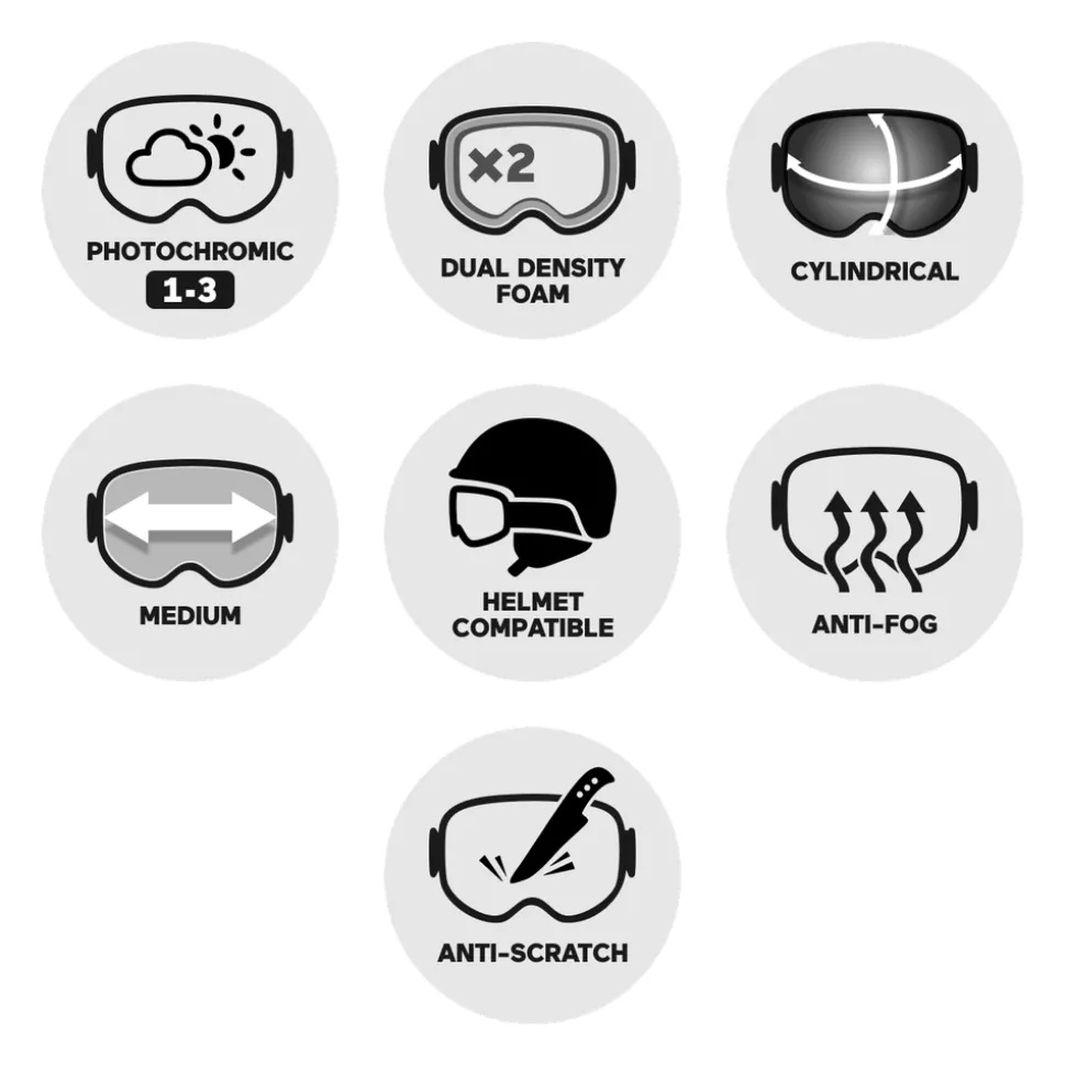 Mousse double densitéSystème AirflowCompatible avec le port du casqueX-Tend Frame X Max Vision X Wide Vision Concept de monture breveté offrant un meilleur champ de vision. Grâce à une monture plus fine et à un écran plus large, le champ de vision du skieur est augmenté de 20% par rapport aux autres concepts de masque sur le marché.« >