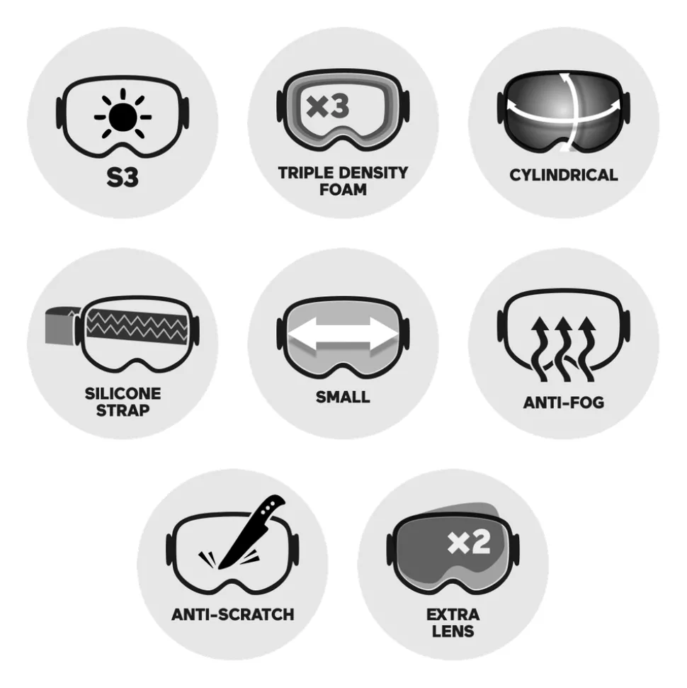 Strap siliconéMousse triple densitéEcran cylindriqueTraitement anti-buée et anti-rayuresEcran Facilement Interchangeable -
