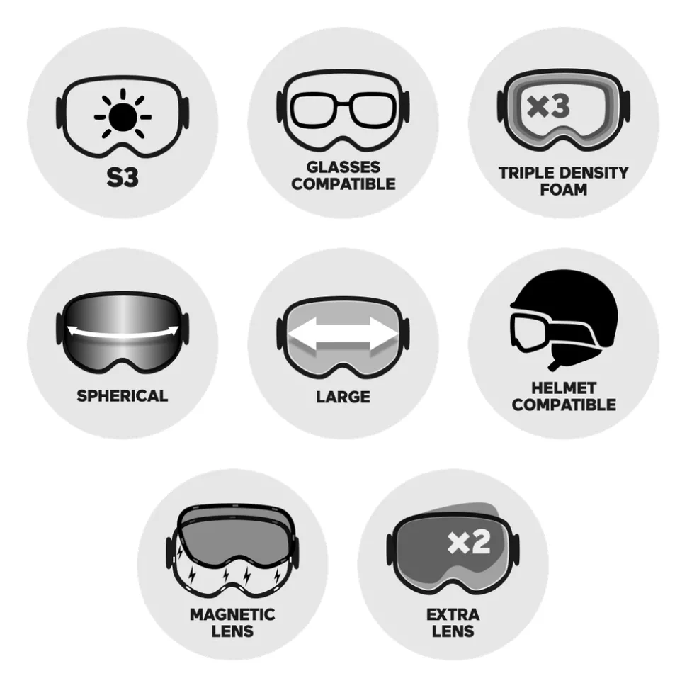 Voici la version grand format du modèle I/O Mag, le I/O Mag XL ! Conçu pour les visages larges, le châssis permet également le port des lunettes de vue, il fait partie des masques de ski OTG. Il dispose de la technologie d’écran magnétique pour un changement d’écran rapide et simple, même avec des gants. Ce système repose sur 8 aimants autour de l’écran qui viennent plaquer l’écran directement sur la monture, puis on verrouille l’écran à l’aide de deux mécanismes sur les côtés. Ainsi, l’écran reste parfaitement en place pendant vos descentes pour une sécurité maximale. L’écran a une forme sphérique pour un champ de vision maximal et une excellente vue périphérique. De plus, il bénéficie de la technologie ChromaPop de la marque pour une visibilité exceptionnelle. Également, les écrans sont dotés de la technologie TLT pour une vision nette et précise. La mousse triple densité couplée à la monture Responsive Fit épouse parfaitement les contours de votre visage pour un confort optimal. Pour une vision sans gêne, l’écran est également traité antibuée 5X, le meilleur traitement antibuée de la marque. Enfin, ce modèle est livré avec un second écran mauvais temps de catégorie 1.