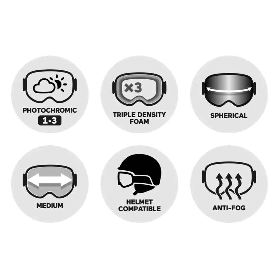 Ecran sphérique Carbonic-XEcran interne antibuée Fog-XTechnologie TLTMonture Responsive Fit™Système de réglage de strap QuickFitMousse triple densitéCompatible avec le port du casqueEcran Carbonic-X avec TLTFit MediumInsert silicone sur le strap -